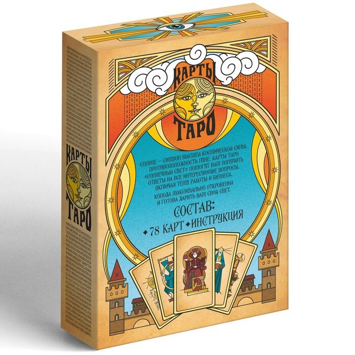 Перед вами легендарная колода карт, предназначенная, в первую очередь, для гадания на любые темы. На 78 картах вы увидите множество символов, каждый из которых трактуется по-своему. В коробке вы также найдете инструкцию со значением той или иной карты, которая поможет разобраться во всех хитросплетениях судьбы.
