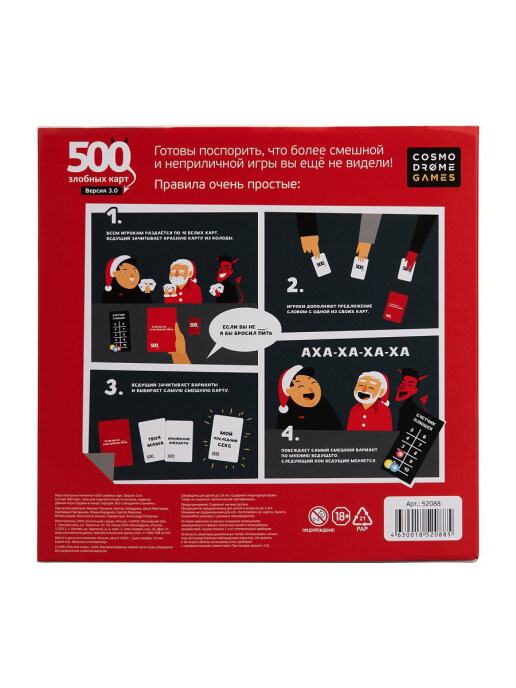 500 злобных карт очень спорная игра, забудьте о толерантности, терпимости, уважению к чувствам других и полностью отдайтесь безудержному веселью.