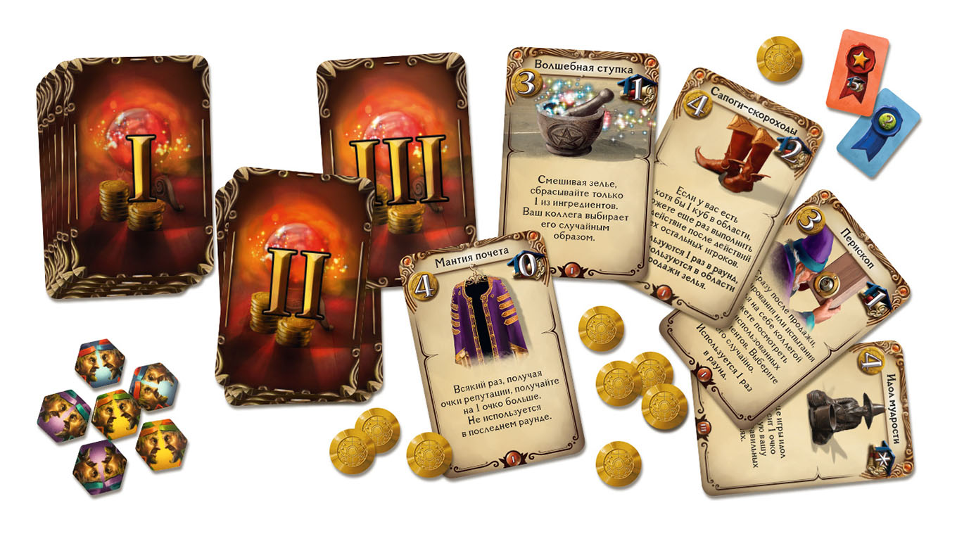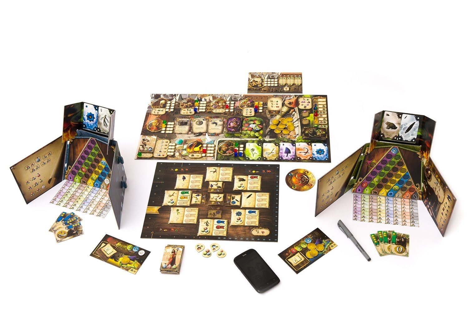Теоретики и практики, вам сюда! В настольной игре "Алхимики" игроки возьмут на себя роль экспериментаторов, которым предстоит определить, верны ли их теории по поводу тех или иных зелий. Смешивая ингредиенты и тестируя результаты с помощью бесплатного приложения для смартфонов, игроки могут продать сомнительные зелья приключенцам и посмотреть на их эффект. Для алхимиков главное репутация, которая будет расти, либо падать в течение игры. А после шести раундов репутация конвертируется в победные очки. Получая артефакты и гранты, игроки соревнуются за право стать самым мудрым изготовителем зелий. Какой эффект даст корень мандрагоры и губчатый гриб вместе? А если смешать хвост скорпиона с ростком полыньи, что получится? Ответ вы найдете только в "Алхимиках"!