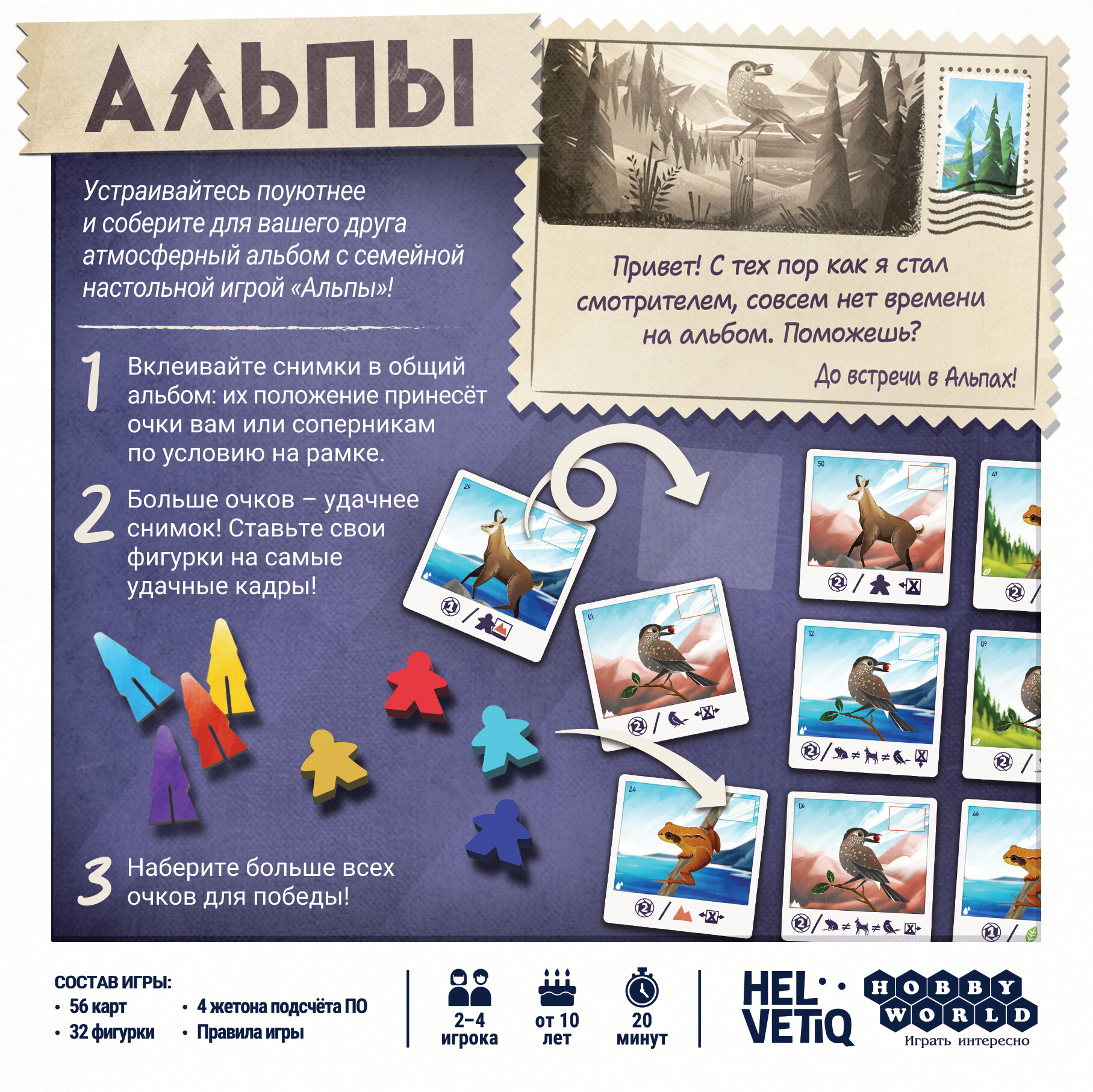 56 карт32 фигурки4 жетона подсчёта ПОПравила игры