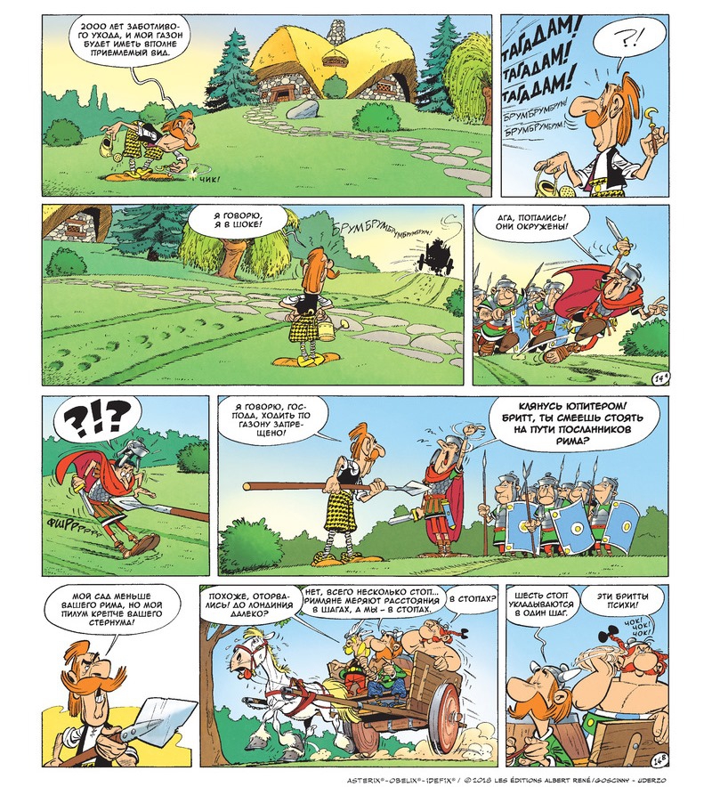 Вся Британия захвачена римлянами. Впрочем, вся ли? Нет! Одна крохотная деревушка, населённая неугомонными бриттами под предводительством вождя Зебигбоса, по-прежнему успешно отбивает атаки завоевателя. Но Цезарь уже подготовил решающий удар... И он наверняка принёс бы ему окончательную победу, не будь у одного из жителей отчаянной деревушки дальнего родственника в Галлии. Стоит ли говорить, что этого родственника зовут... Астерикс!