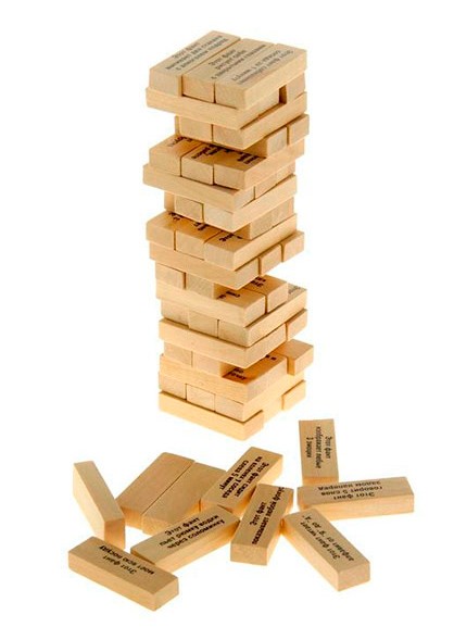 Классическая игра на аккуратность возвращается! Правила "Башни" просты и понятны - игрокам нужно вытащить брусок одной рукой, и поставить его наверх башни. У кого вся эта конструкция развалится, тот проигрывает. Данное издание имеет одно существенное отличие - на некоторых брусках присутствуют фанты с заданиями 18+. Данный элемент сильно разнообразит привычный игровой процесс, и хорошо подойдет для веселых компаний. Пора взглянуть на привычную игру по-новому!