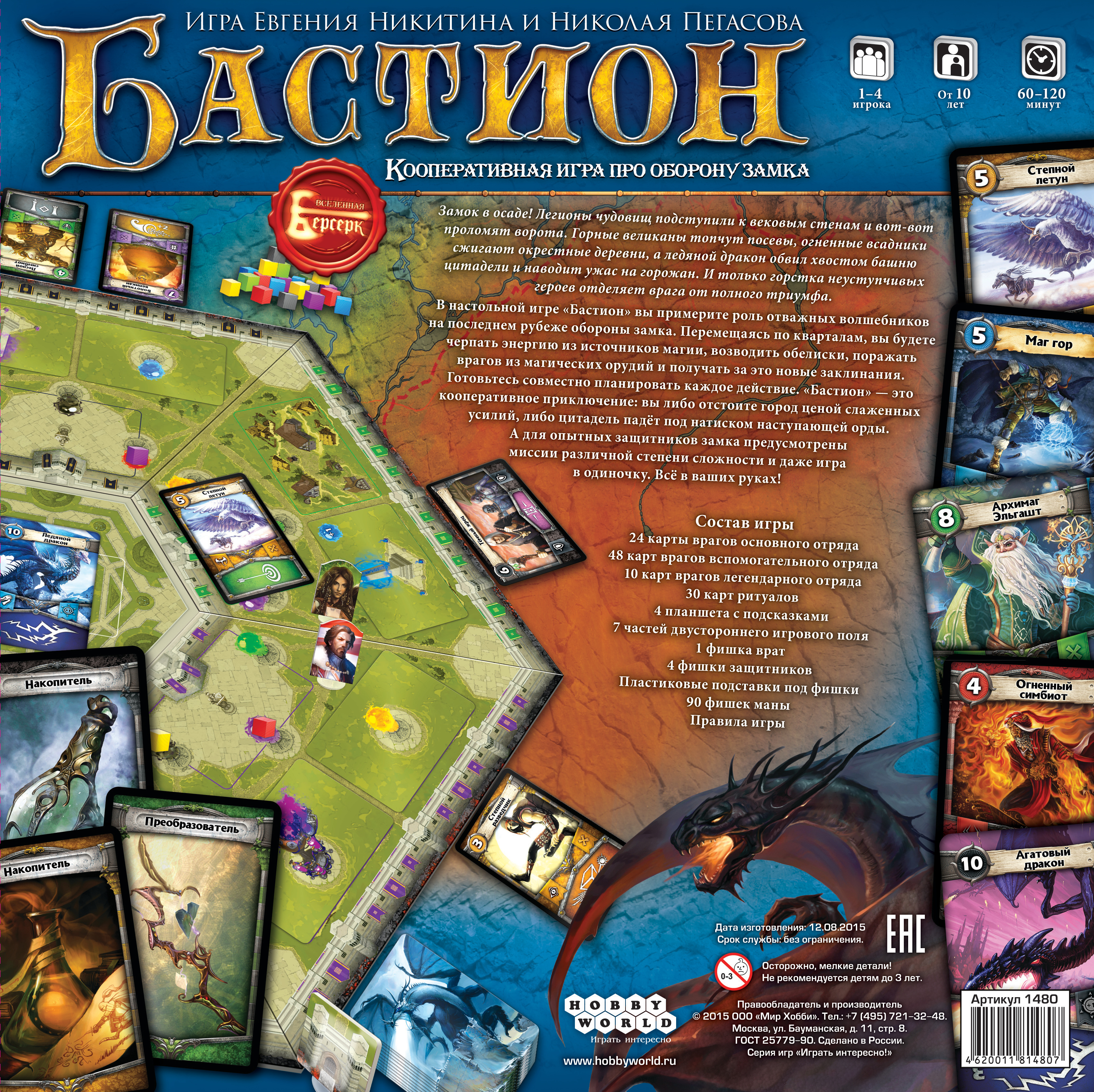 В настольной игре «Бастион» вы возьмете на себя роль храбрых волшебников, защищающих последний рубеж обороны родного замка от бесконечных толп ужасных монстров.