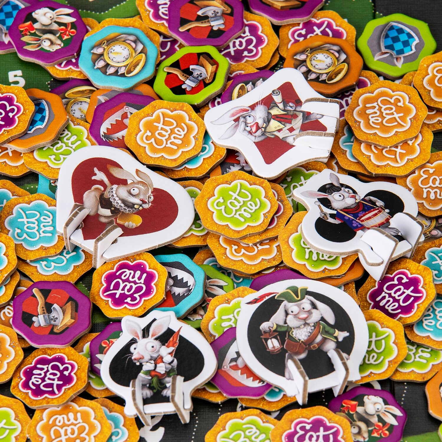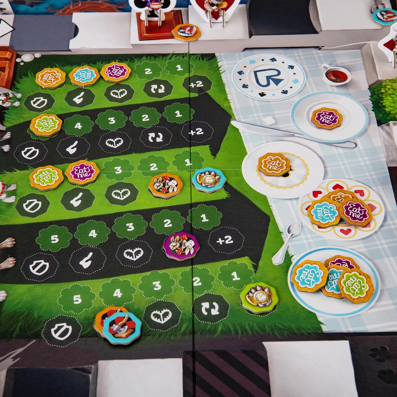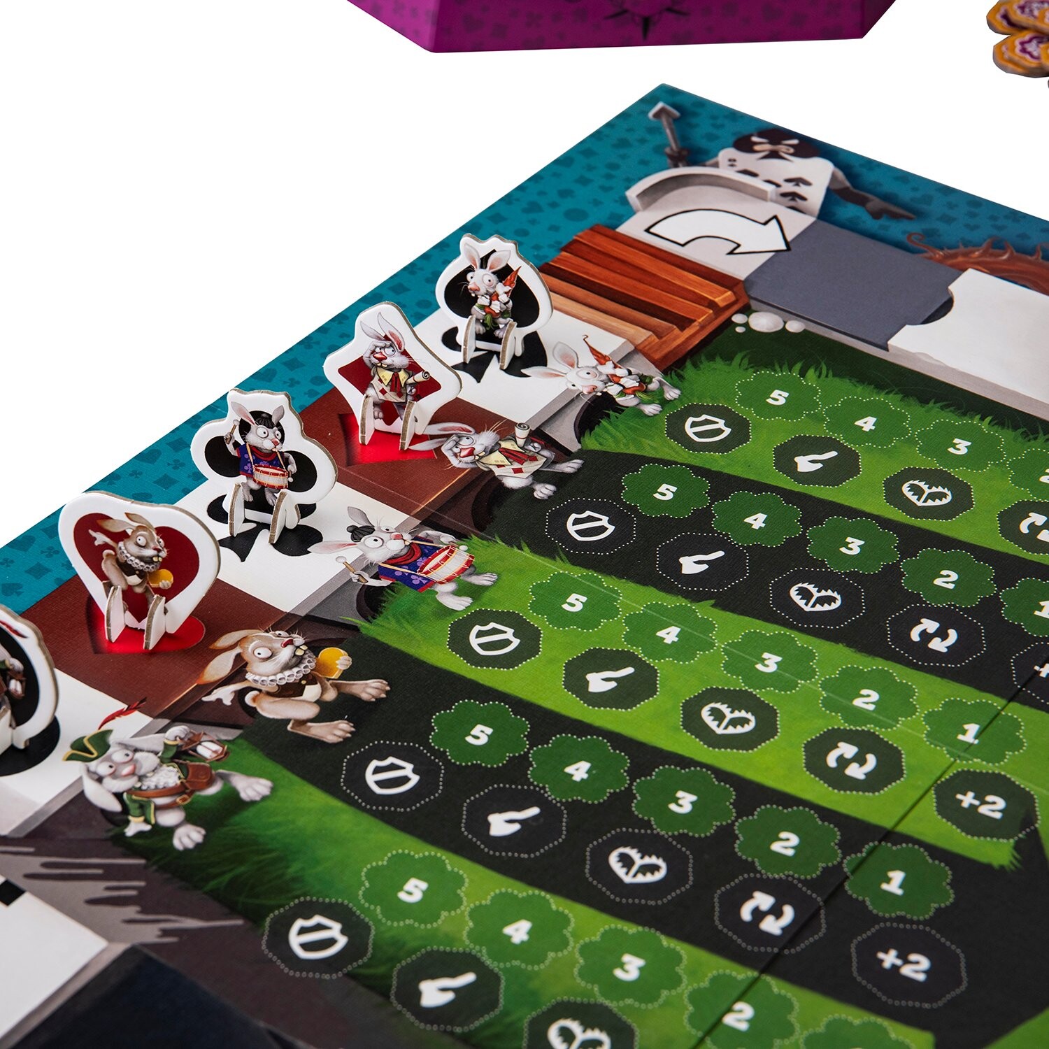Вот уж незадача - Белый Кролик опаздывает на Безумное Чаепитие, и только вам под силу ему помочь! Игрокам предстоит доставить Белого Кролика до финиша первым, но сделать это не так-то просто - на пути множество опасностей, включая капканы, других участников и даже Злую Королеву. У каждого кролика (коих пять, и ни один не закреплен за конкретным игроком) на поле есть запас особых эффектов и пирожков, которых не должно быть слишком много, иначе движение замедлится. Хорошо бы еще было не попасть в капкан и успеть вовремя. Как вы понимаете, важно сохранить правильный баланс между скоростью и сбором пирожков, ведь именно их количество определит победителя. Ну что, готовы отправиться в Страну Чудес?