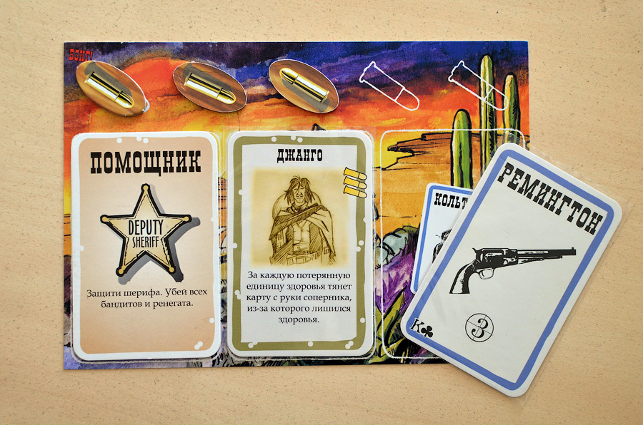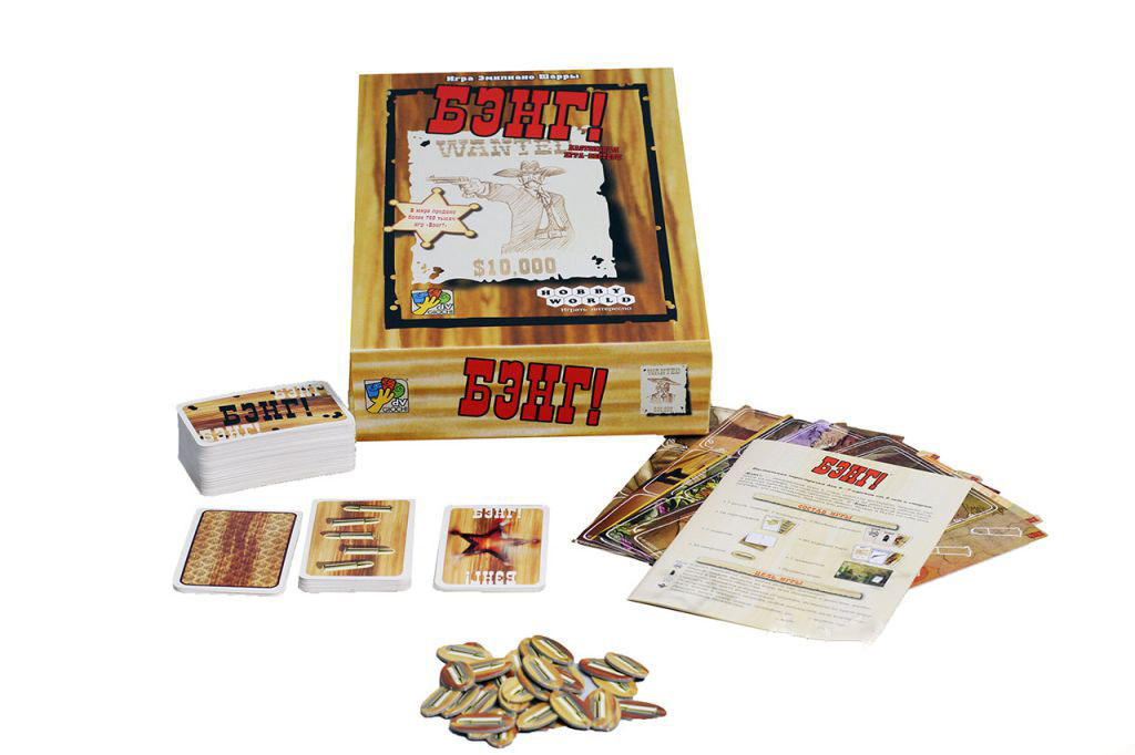Добро пожаловать в маленький городок, где каждый житель носит при себе большой револьвер, ружьё или прячет за пазухой многоствольный пулемёт Гатлинга. Настольная игра Бэнг – вестерн, в котором никому нельзя доверять.