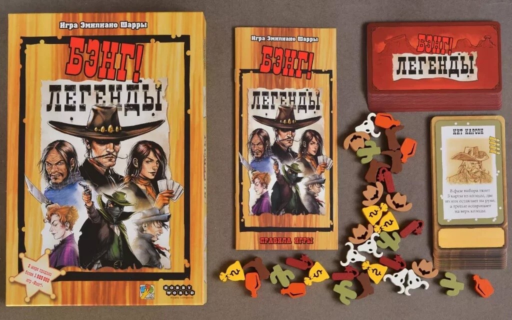 16 карт персонажей16 карт подвигов35 деревянных фишек славыПравила игрыРазмер и количество карт: 61x112 мм (32 шт.)