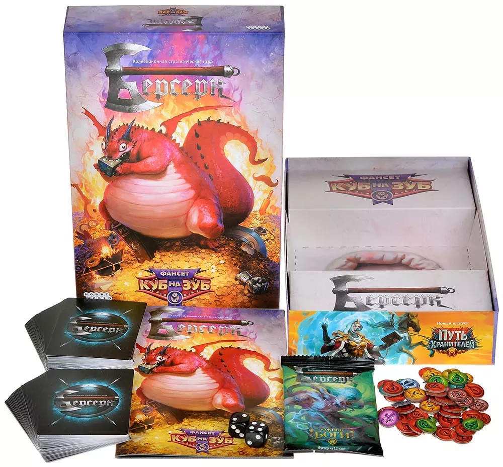 2 готовые колоды из 30 картБустер выпуска "Ложные боги"Жетоны ран и эффектов2 кубикаПамятки и таблица ударовПравила игры
