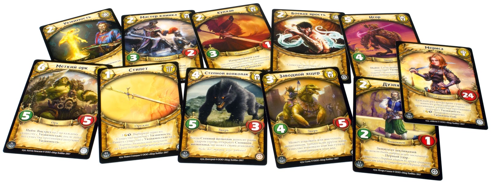 Герои, пришла пора показать свое мастерство в поединке со своим оппонентом! "Берсерк. Герои" - карточная стратегическая игра, в которой игрокам предстоит нанимать боевые отряды, использовать карты оружий, заклинаний, и событий, чтобы одолеть соперника. Герой Мериса увеличивает наносимые поверждения и обходит оборону соперника, если вражеский Герой получил урон. Данный набор является сбалансированным для одного игрока и содержит все, чтобы начать играть. Учтите, вашему оппоненту также понадобится базовый набор. Пора на поле битвы!