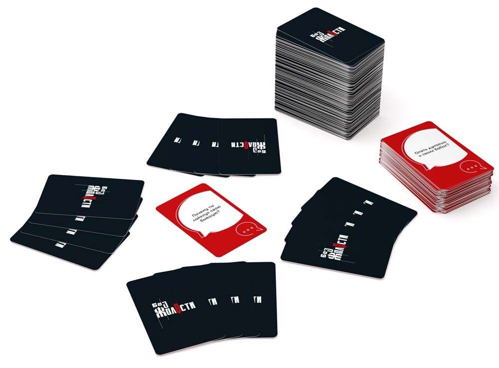 Какой ответ будет самым смешным? Готовьтесь к веселому соревнованию для большой компании! В данной игре вас ждет множество карт с различными ситуациями и забавными надписями. Один из участников станет ведущим и будет зачитывать вопросы или ситуации, а остальным игрокам предстоит выбрать из своих карт ответов лучший, по их мнению. После чего ведущий выберет самый смешной вариант из представленных. Тот игрок, ответам которого будет отдаваться предпочтение наиболее часто, станет победителем! *Внимание! Данная игра предназначена для лиц старше 18-ти лет.