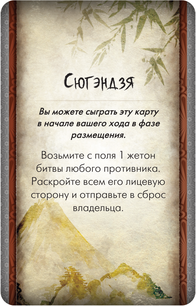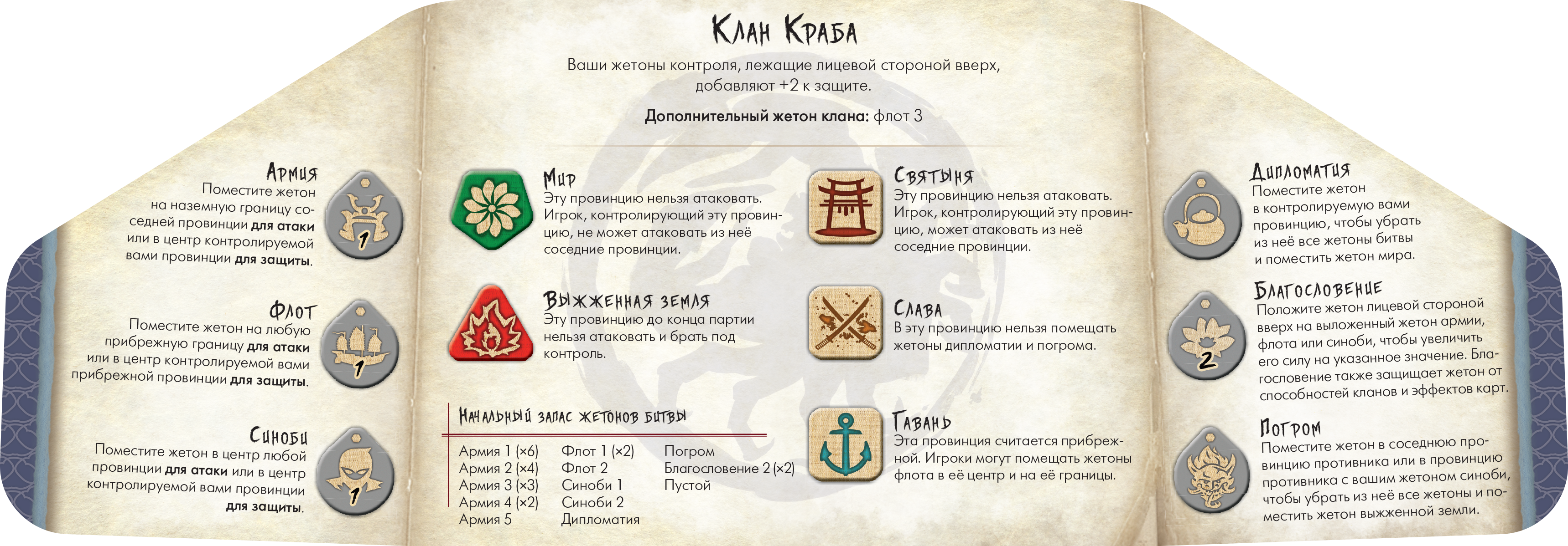 Лучшие из лучших, элита среди самураев - благородные военные феодалы средневековой Японии, схлестнутся в эпической битве! С помощью хитрости, тактики и военного дела, игроки поборются за королевство Рокуган. В их арсенале будет множество возможностей - армия, флот, дипломатические миссии и разведчики. Главное, использовать их максимально грамотно, ведь ресурсы для приобретения возможностей ограничены и невпосолнимы. А ведь есть еще и тайные цели. По прошествии пяти раундов, игроки получат очки чести за захваченные территории, жетоны контроля и выполнение тайной цели. Достойным звания хозяина королевства будет только один!