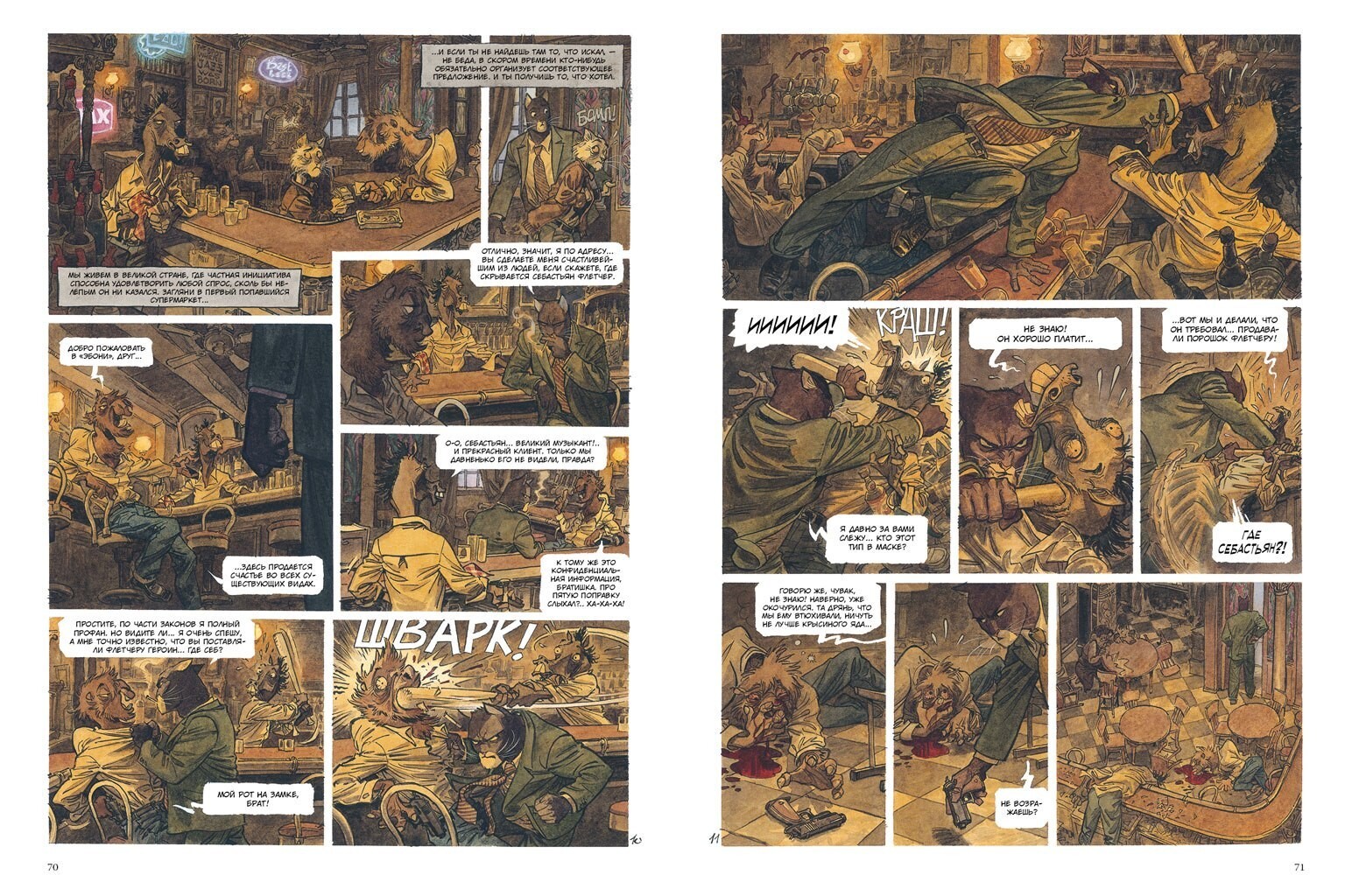В комиксе «Блэксэд. Книга 2. Красная душа. Ад безмолвия» вас ждет новая встреча с Джоном Блэксэдом, черным котом частным сыщиком, и его верным помощником репортером-лаской Уикли. В двух историях, вошедших в это издание, читатель возвращается в нуарную Америку 50-х, совершает путешествия в Лос-Анджелес и Новый Орлеан, знакомится с новыми животными, олицетворяющими типичных персонажей, населяющих круто сваренные детективы, и погружается в жестокий и мрачный мир, где играть по правилам — не самая лучшая идея. Серия Хуана Диаcа Каналеса и Хуанхо Гуарнидо — образец кинонуара, перенесенного на бумагу, который погружает читателя в липкую и мрачную атмосферу безрадужного прошлого.