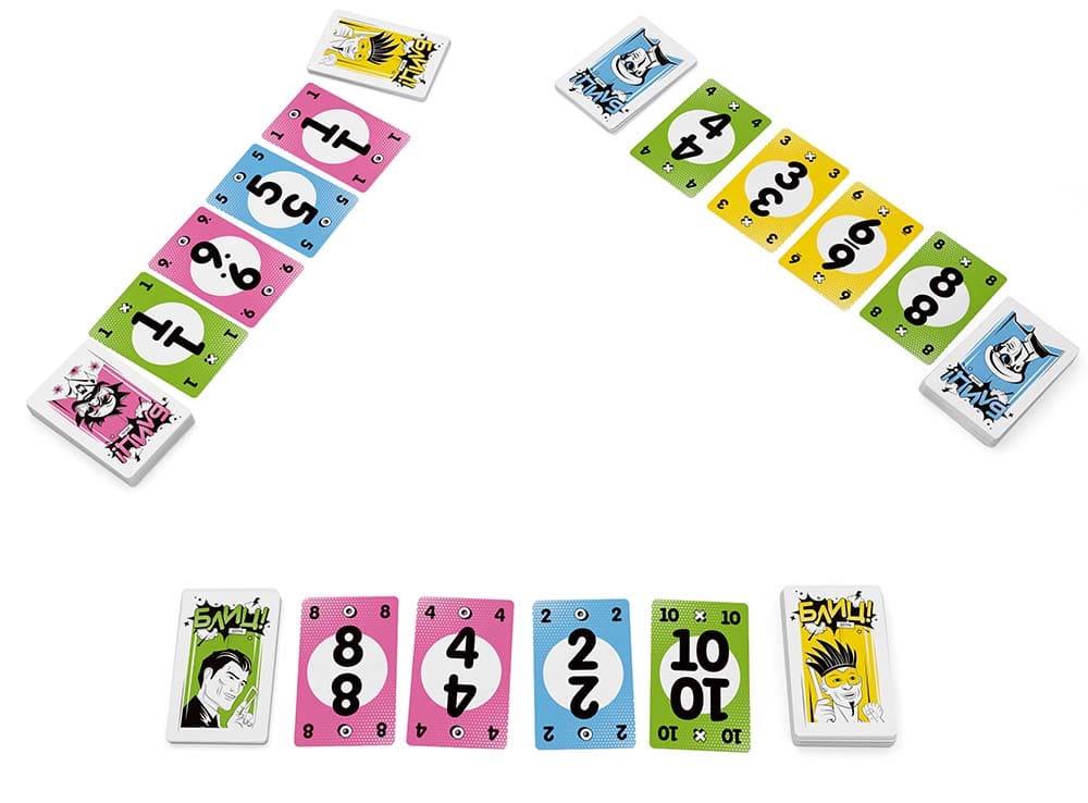 В данной стремительной игре участники пытаются избавиться от всех карт на руках, выкладывая их по цвету, либо по цифре, по нарастающей. Получив в начале игры карты на руки, все игроки ходят одновременно, кто как успеет. Ситуация на игровом столе меняется каждую секунду, напряжение возрастает, а веселья этот процесс принесет немало.