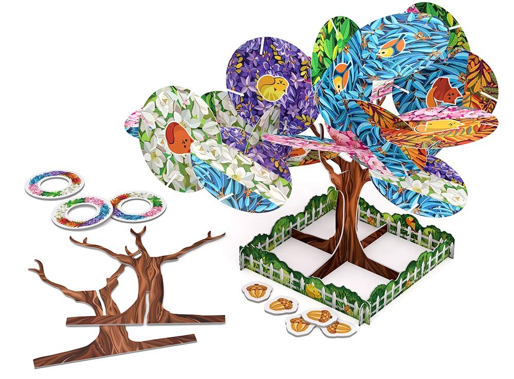В данной соревновательной игре участники поборются за право стать лучшим, навешивая на специальное дерево карты-листья. Соединяя карты друг с другом, участники пытаются сделать так, чтобы листва не опала, что может произойти при неаккуратном обращении. При этом, с помощью специальных карт вы можете усложнить жизнь своим соперникам. Получится ли у вас повесить все свои листья и стать лучшим в этом красочном противостоянии?