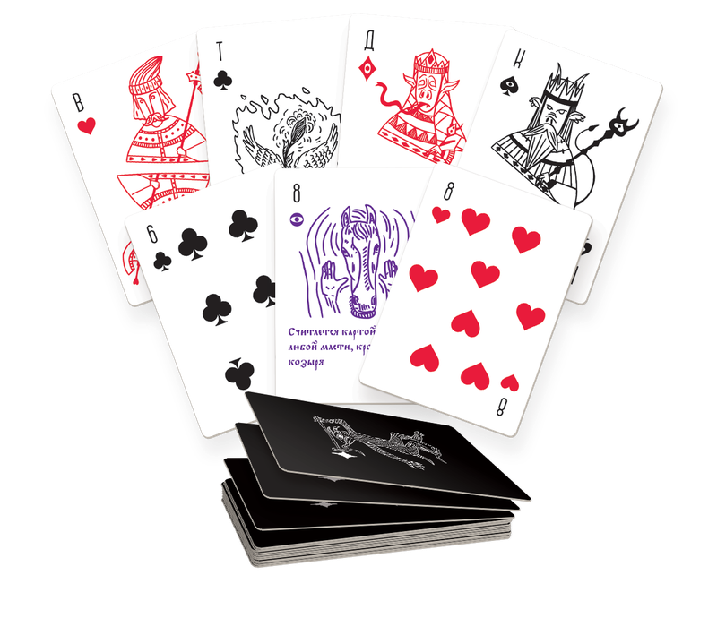 В коробке вы найдете карты, оформленные в стиле знаменитой видеоигры "Черная книга". Вы можете сыграть в классического "дурака", но лучше попробовать колдовской вариант, в котором некоторые карты заменяются на зачарованные, обладающие уникальными эффектами. Благодаря ним ход партии в любой момент может поменяться, а вы получите преимущество над своими соперниками. Попробуйте избавиться от всех карт на руках и станьте победителем!