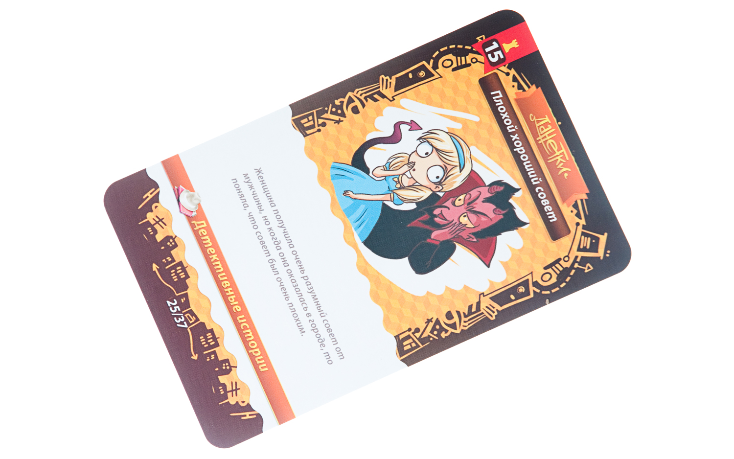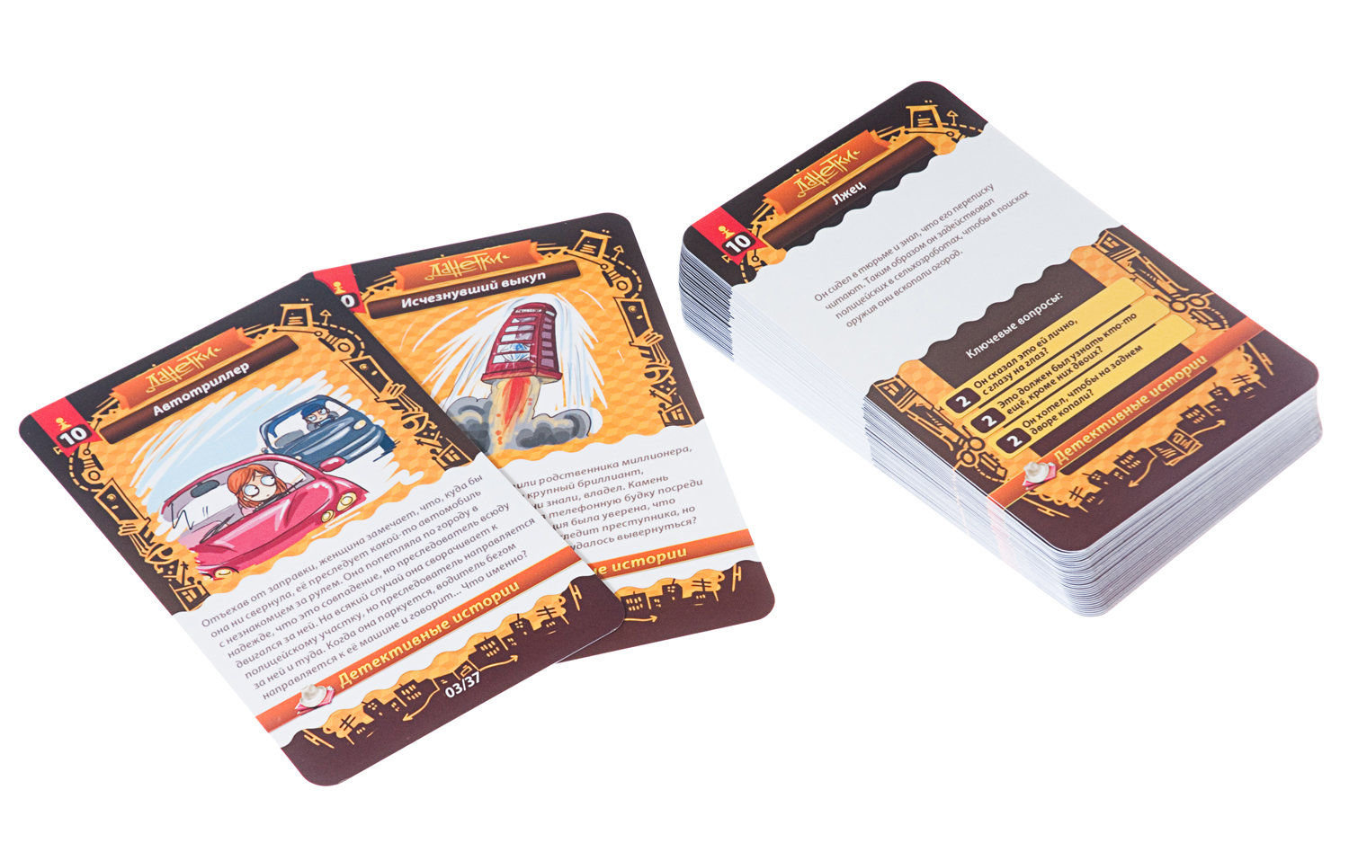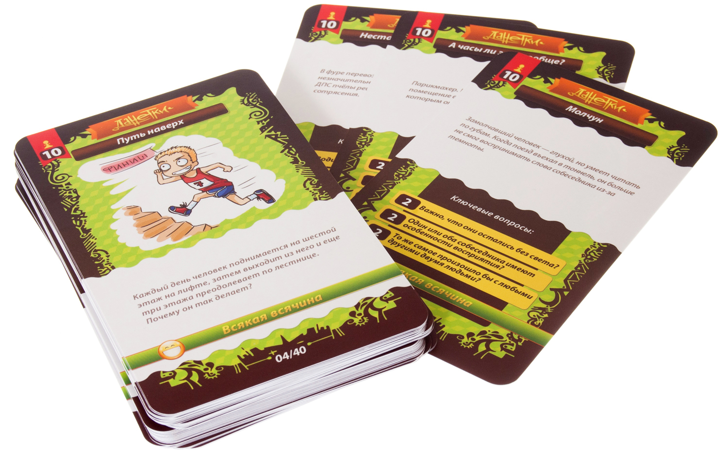 Данный набор включает в себя различные сборники игры "Данетки", даже те, которые до этого нигде не встречались. Цель игры крайне проста и интересна - ведущий вытаскивает из общей колоды карту и зачитывает историю, часто написанную завуалированно и с детективным уклоном. Игрокам нужно понять, что же имелось ввиду. Они могут задавать вопросы ведущему, но лишь такие, на которые он может дать ответы "да", или "нет". Кто задаст правильный вопрос и догадается первым? Вы также можете попробовать скоростной режим, в котором определится самый быстрый участник. Вперед, отгадывать!