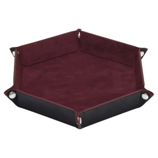 Дайс-трей сделан из кожезаменителя с металлическими кнопками по углам, бархатистый внутренний слой позволит кубикам не повреждаться при броске.