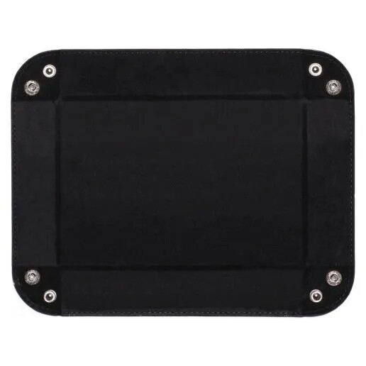 Дайс-трей сделан из кожезаменителя с металлическими кнопками по углам, бархатистый внутренний слой позволит кубикам не повреждаться при броске.