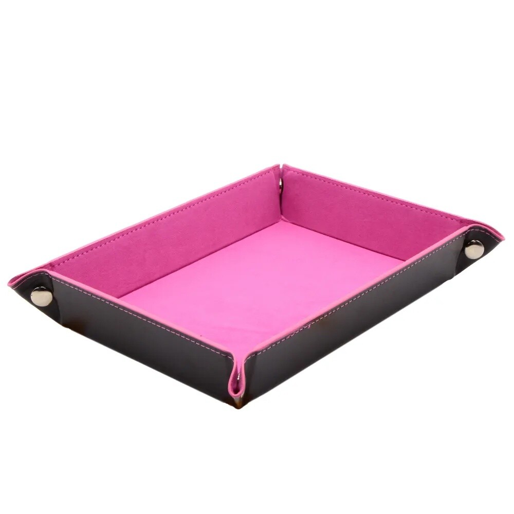 Дайс-трей сделан из кожезаменителя с металлическими кнопками по углам, бархатистый внутренний слой позволит кубикам не повреждаться при броске.