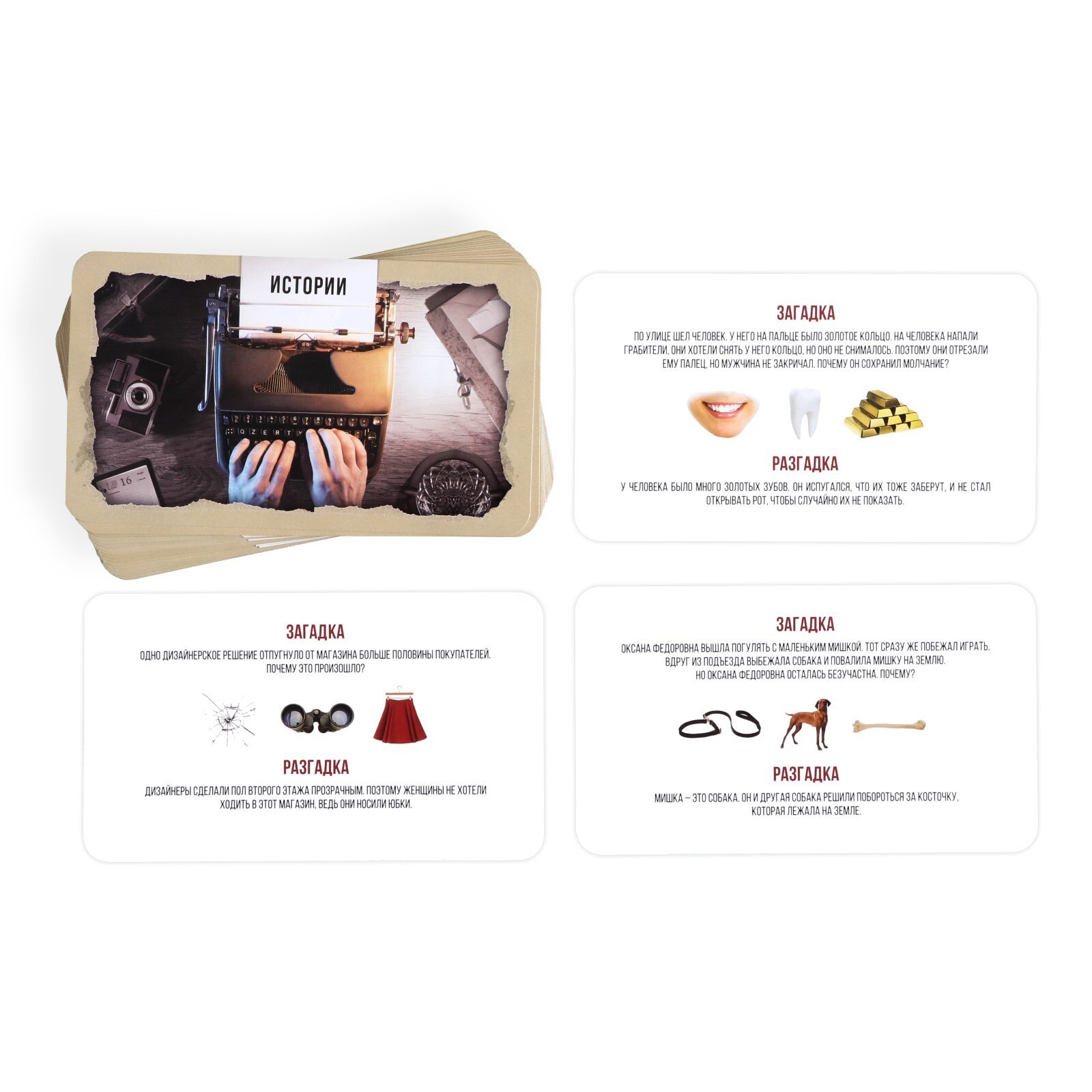 В данной игре вас ждет увлекательное детективное противостояние. Поделившись на команды, игроки стараются раскрыть одно из двадцати дел, задавая соперникам наводящие вопросы. Если их догадка верна, участники получат карту улики, накопление которых в конце партии определит, получится ли у вас раскрыть преступление. Какая из команд станет самой результативной? Почувствуйте себя настоящим детективом и найдите ответы на все вопросы!