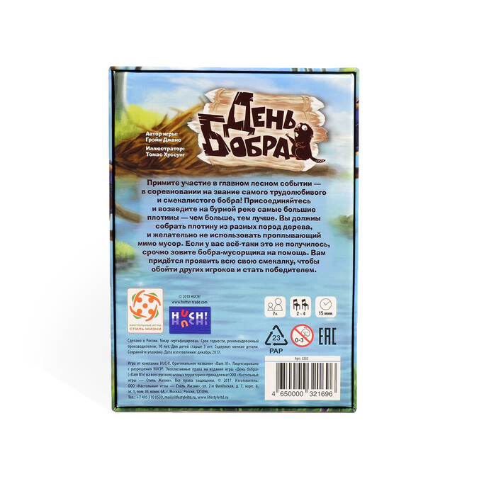 Кто возведет лучшую плотину? Состязание объявляется открытым! В данной настольной игре участникам предстоит набирать древесину для постройки плотины. Разные участки плотины стоят разное количество древесины, причем тип ее тоже имеет значение. Удача может легко отвернуться от вас, и вместо древесины из реки вам достанется какой-то мусор, непригодный для постройки. Если его накопится слишком много к концу игры, игрок получит штраф и потеряет драгоценные победные очки. Но не отчаивайтесь - если у вас на руках будут специальные бобры, вы легко сможете избавиться от мусора без штрафов. Постарайтесь использовать свои возможности по максимуму и обойдите других участников!