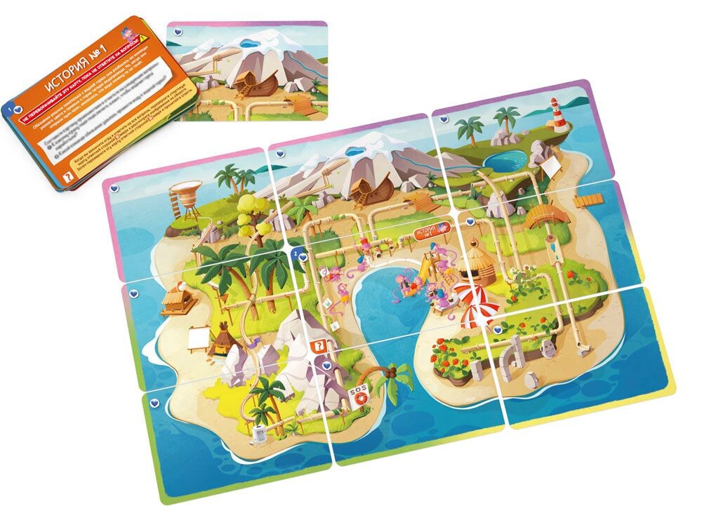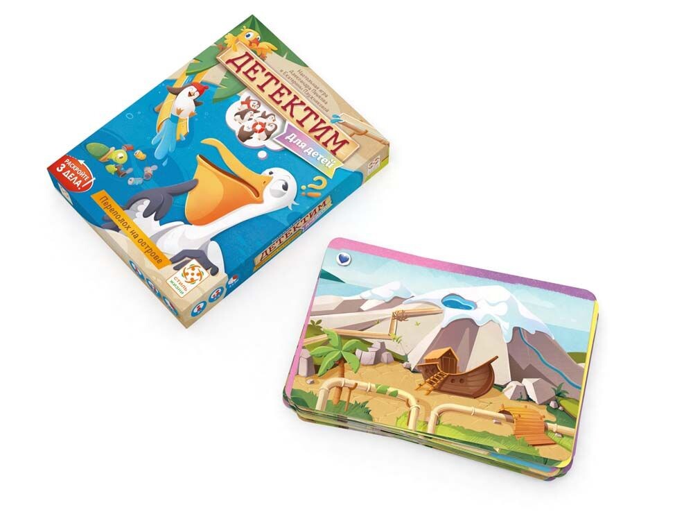 Детский детектив предложит юным игрокам объединиться и проявить чудеса своей дедукции. На острове происходит много всего интересного, и ваше участие тут очень пригодится! Смотрите на карты с уликами, читайте и анализируйте информацию. Если вы считаете, что информация на карте полезна, выложите ее в центр стола, формируя таким образом общую и цельную картину. Главное, не ошибиться в своих предположениях, ведь тогда у вас не получится организовать на острове веселый праздник! Получится ли у вас пройти все три истории?
