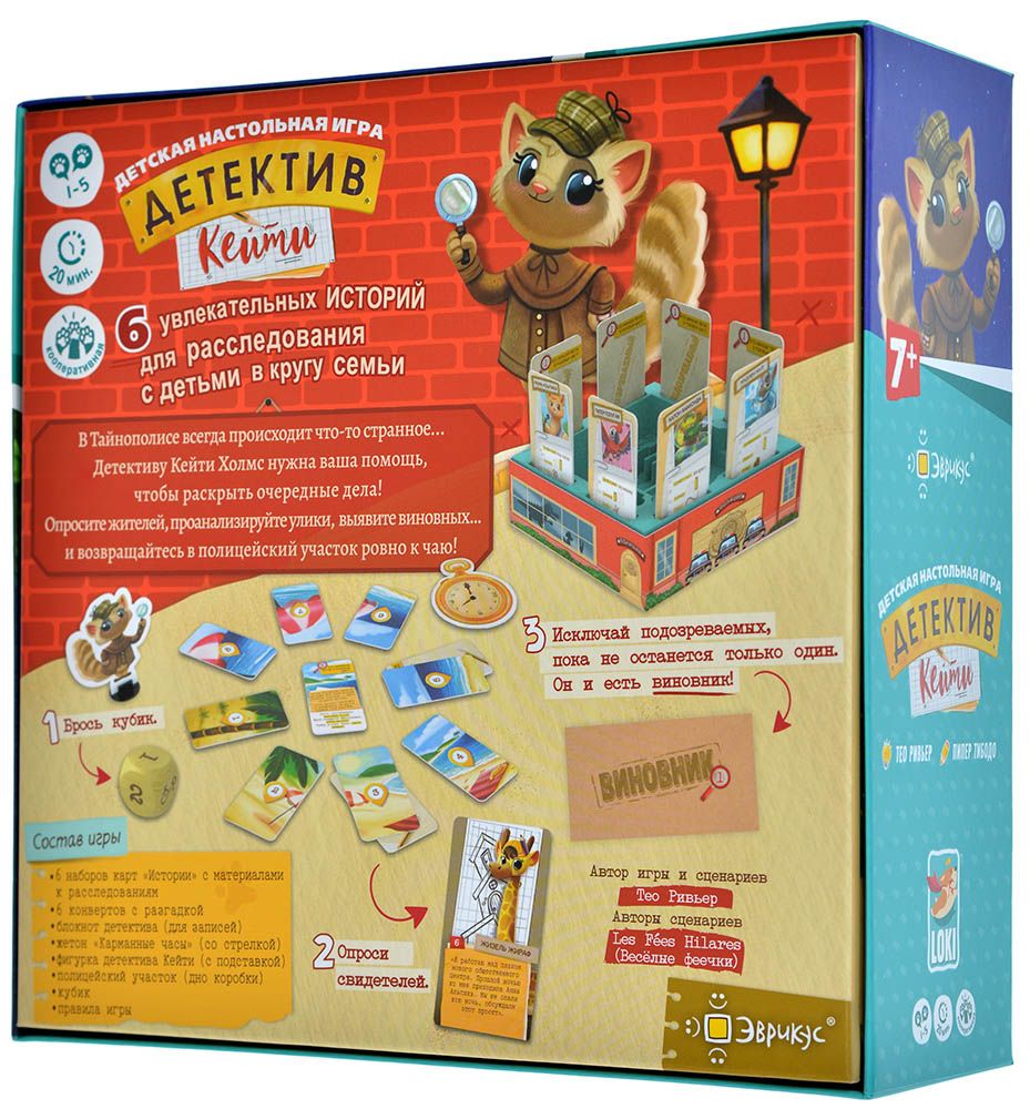 Юные детективы, покажите свою проницательность! В данной командной игре вас ждут шесть увлекательных детективных историй. Ищите улики и опрашивайте свидетелей, применяйте свою внимательность и память, но не тратьте время понапрасну - в процессе партии внутриигровые часы тикают неумолимо. Если вы не успеете найти ответы на все вопросы до пяти часов, то разгадку вам найти уже не удастся. Но мы верим, что у вас все получится! Проверьте свои способности и докажите, что вы лучшие сыщики!