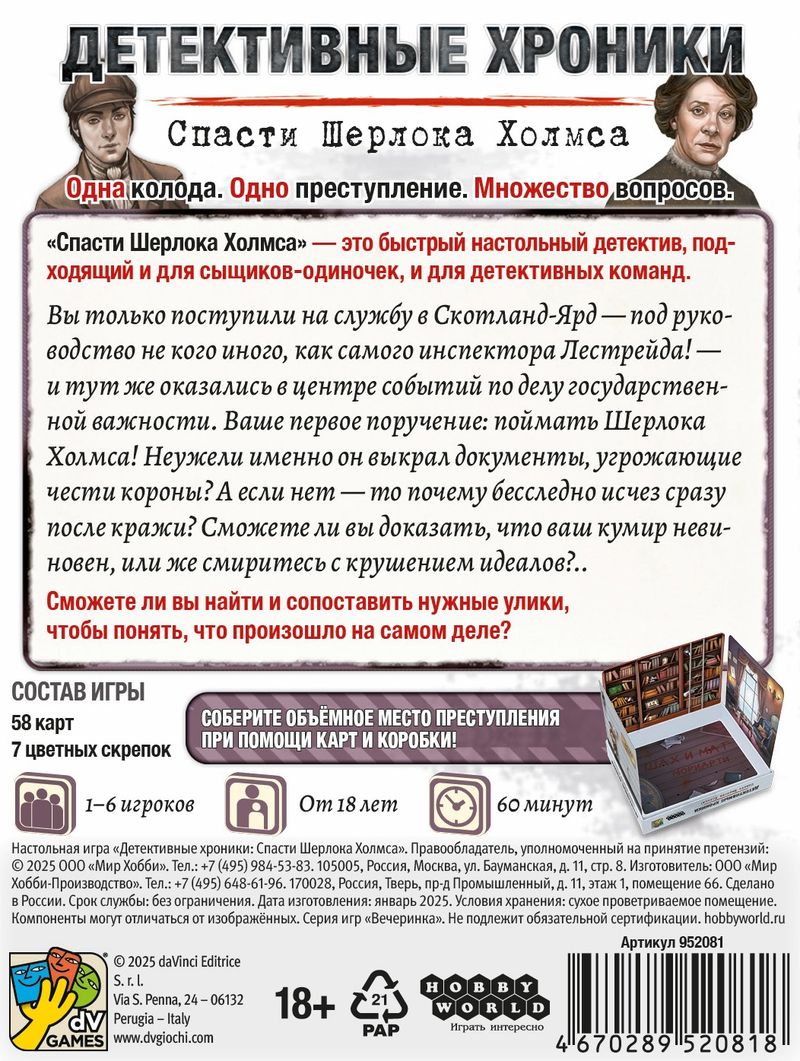 58 карт7 цветных скрепокРазмер карт: 87x112 мм (59 шт.)