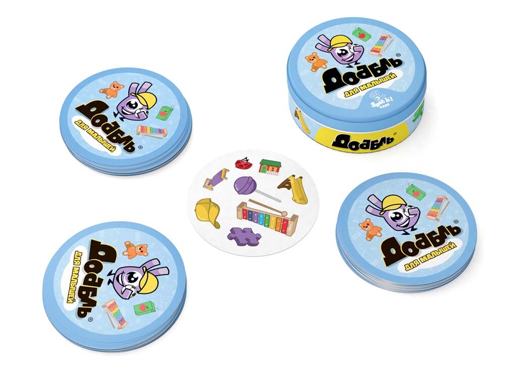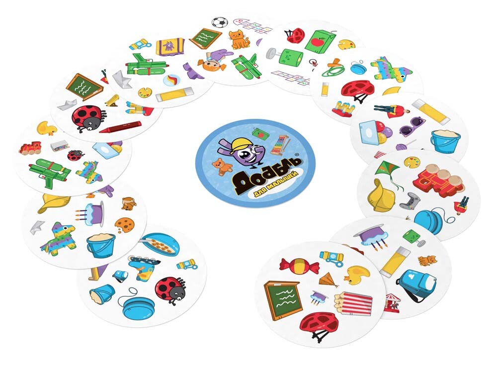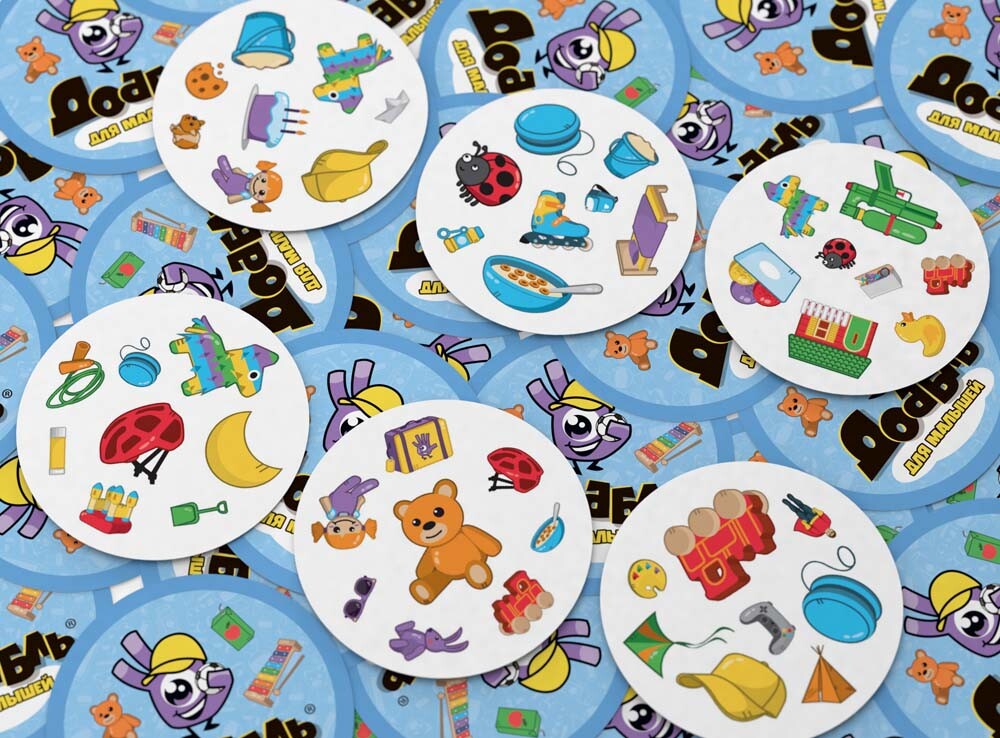 Детская версия знаменитой игры проверит вашу скорость реакции и внимательность. На круглых картах вы найдете множество ярких иллюстраций. Выложив карты на стол, игроки стараются найти одинаковые рисунки на разных картах. Кто будет делать это чаще и быстрее остальных, станет победителем!
