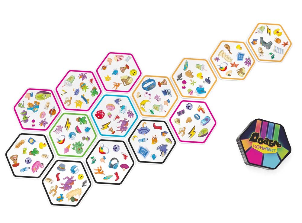 Обновленная версия легендарной игры предложит вам новое правило, а азарта станет только больше! Как и прежде, игрокам предстоит искать на картах со множеством иллюстраций совпадающие изображения, стараясь опередить друг друга. Только теперь карты имеют окантовку определенного цвета, и участникам для победы необходимо выстроить линию из четырех карт, прикладывая друг к другу по цвету и одинаковому рисунку. Кто сможет справиться первым? Проверьте свою внимательность в одиночном режиме или командном противостоянии!