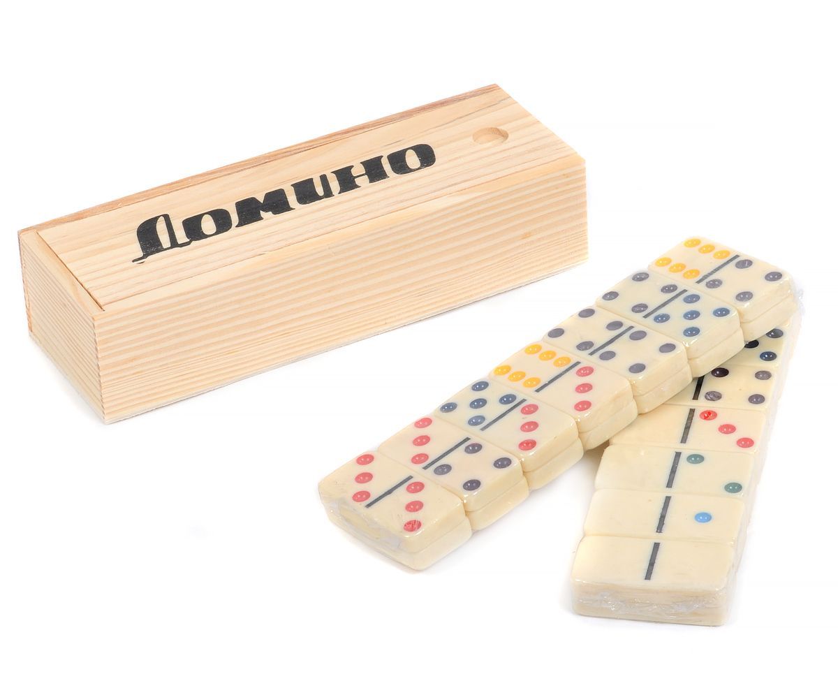 Домино (пластиковые фишки) в деревянной коробке 18x6,5 см