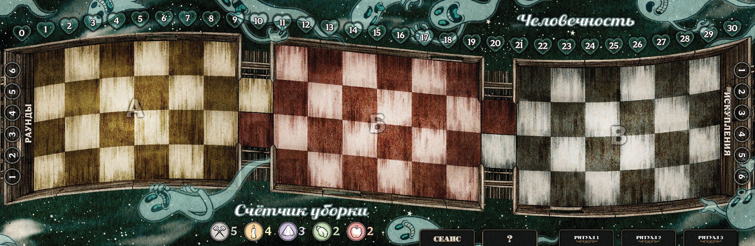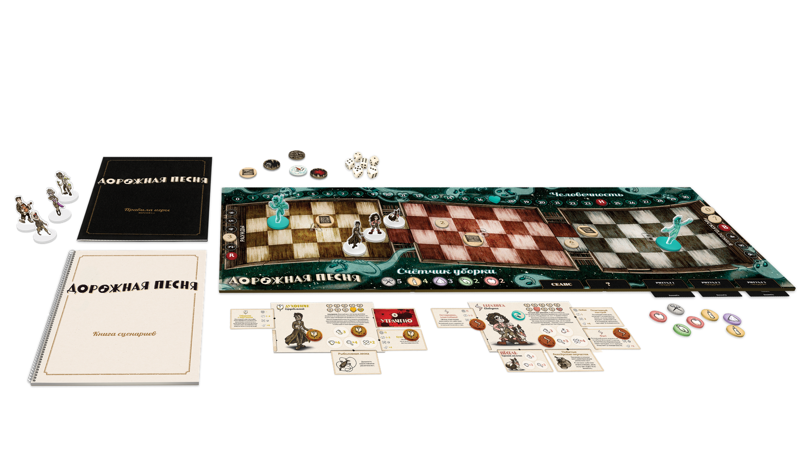 Около 100 фишек, маркеров и жетонов