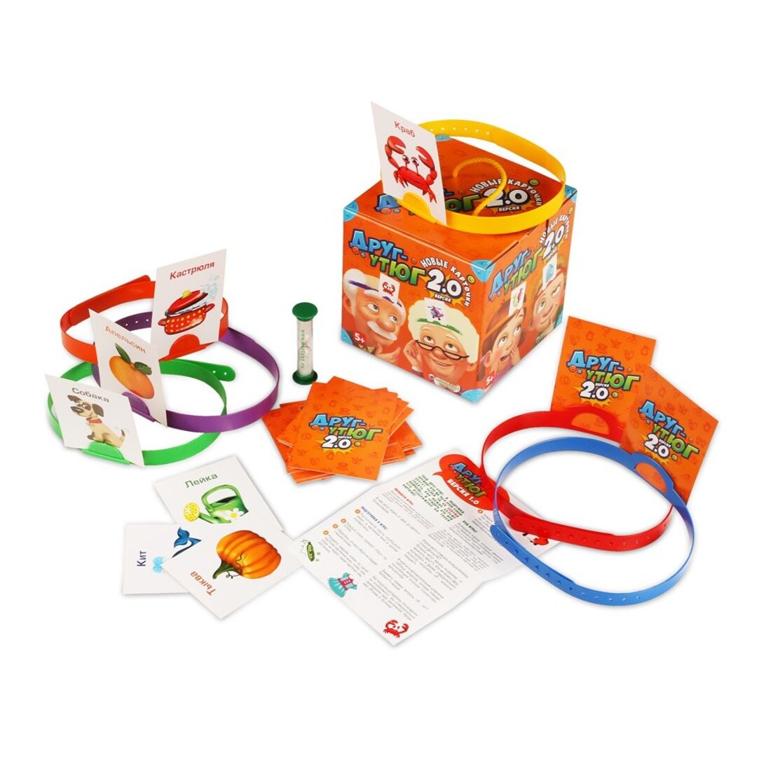 Зовите детей и взрослых, мы начинаем классическую викторину! Игроки надевают обручи на голову и вставляют туда карту с изображением, которое надо отгадать. Песочные часы переворачиваются, и теперь у вас есть всего минута, чтобы задать как можно больше вопросов и понять, что у вас находится на лбу. В отличии от предыдущей версии, в этой игроков ждут абсолютно новые карточки и возможность усложнить правила. При желании, вы можете объединить данную игру с предыдущей версией, и тогда играть станет еще веселее!