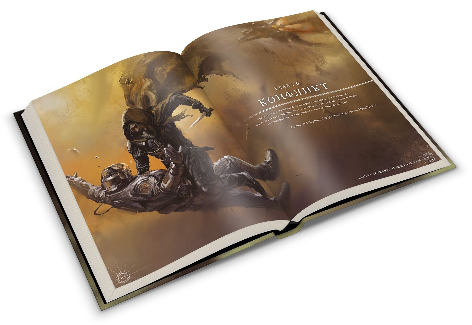 Настольная ролевая игра, основанная на знаменитом книжном цикле, предложит вам создать свою историю в мире интриг и далекого будущего. Книга правил содержит всю информацию о мире, фракциях его населяющих, а также все о создании вашего персонажа. Выберите одну из сторон конфликта и участвуйте в выполнении заданий и стычках с врагами. Выберите одного из игроков как ведущего, который будет направлять ваше приключение, и отправляйтесь на бескрайнюю планету, полную песка и драгоценной пряности!