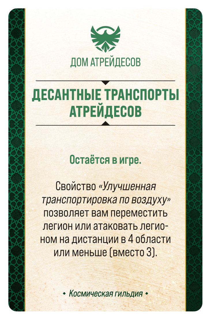 В дополнении к дуэльной стратегии вас ждут новые возможности, которые могут сыграть ключевую роль в определении победителя. Конфликт двух Великих домов разрастается, и слухи о нем разлетаются по всей галактике. Благодаря вашим действиям в ходе партии, участники смогут призвать себе на подмогу армию других Великих домов, которые устремляются к Арракису. Объедините свои силы с подкреплением и разгромите своего соперника!