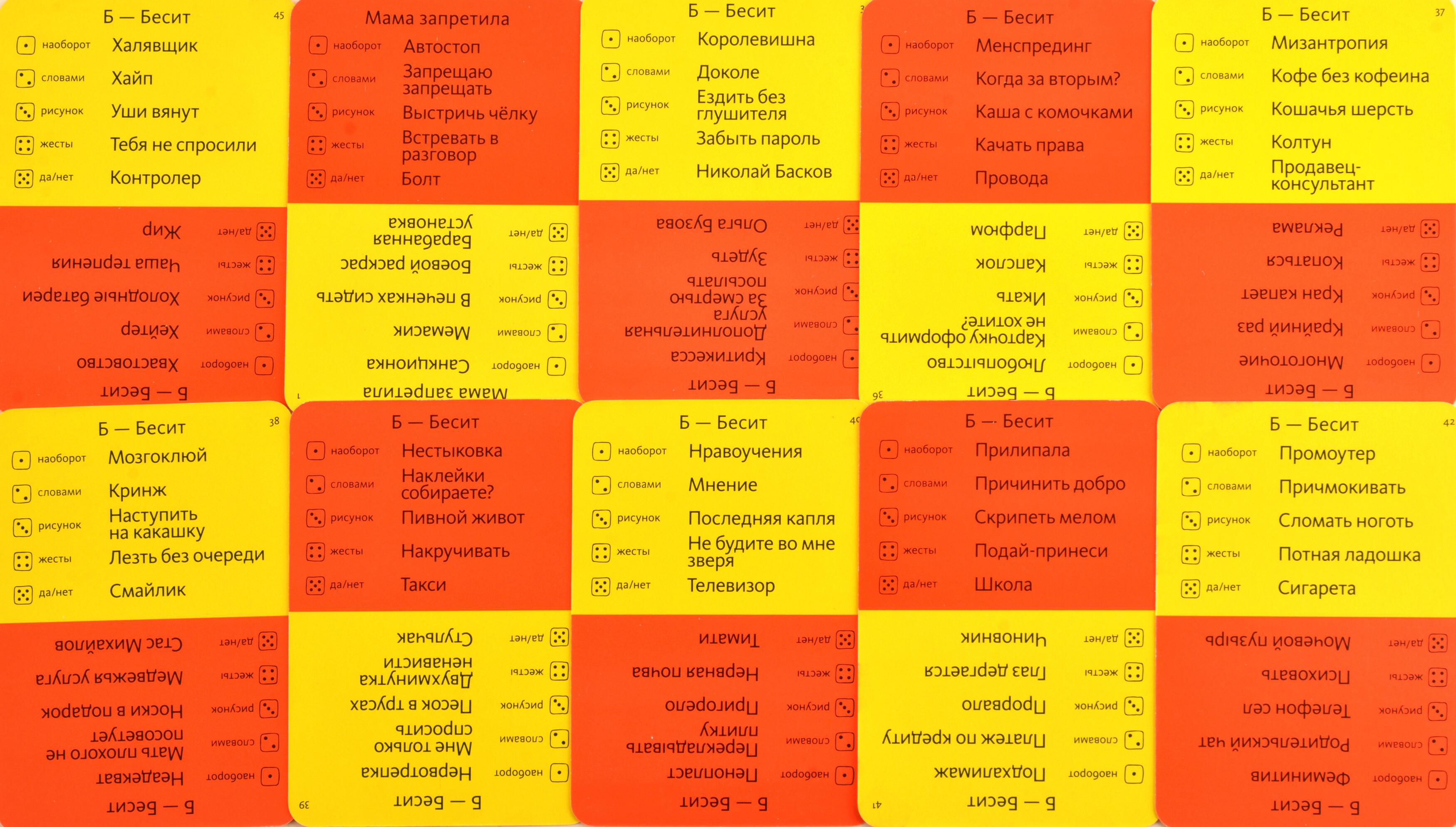 Как и прежде, игрокам предстоит объяснять друг другу слова с карточек различными способами. Показывать пантомиму и рисовать, объяснять другими словами и читать задом-наперед, лепить из пластилина и устраивать "вопрос-ответ". Данный выпуск тематический - слова, в основном, подобраны из современного молодежного сленга и содержат выражения, за которые точно можно получить выговор!