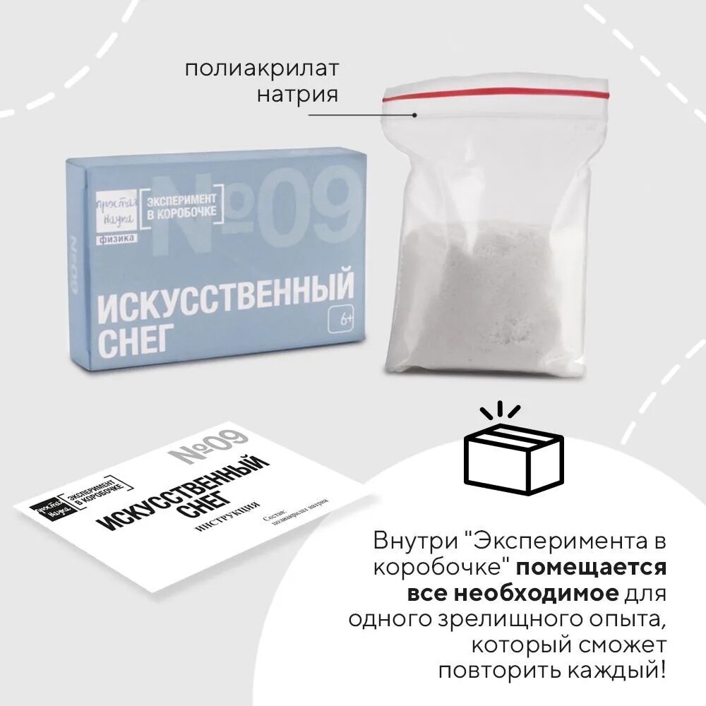 "Искусственный снег" - отлично подходящий как детям, так и взрослым, опыт. Вам понадобится лишь вода и компонент набора для получения замечательного материала для декора, игры в снежки и лепки миниатюрного снеговичка!