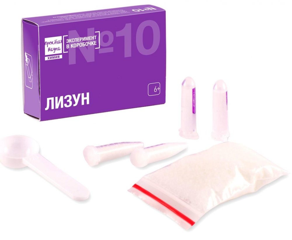 "Лизун" - эксперимент, благодаря которому у Вас получится самый настоящий лизун! По консистенции он желеобразный, тягучий, но не прилипающий ни к рукам, ни к поверхностям. В комплектации набора граммовки рассчитаны так, что Вам не придется измерять необходимое количество каждого компонента для изготовления, нужно лишь следовать инструкции и у Вас получится игрушка-антистресс лизун.