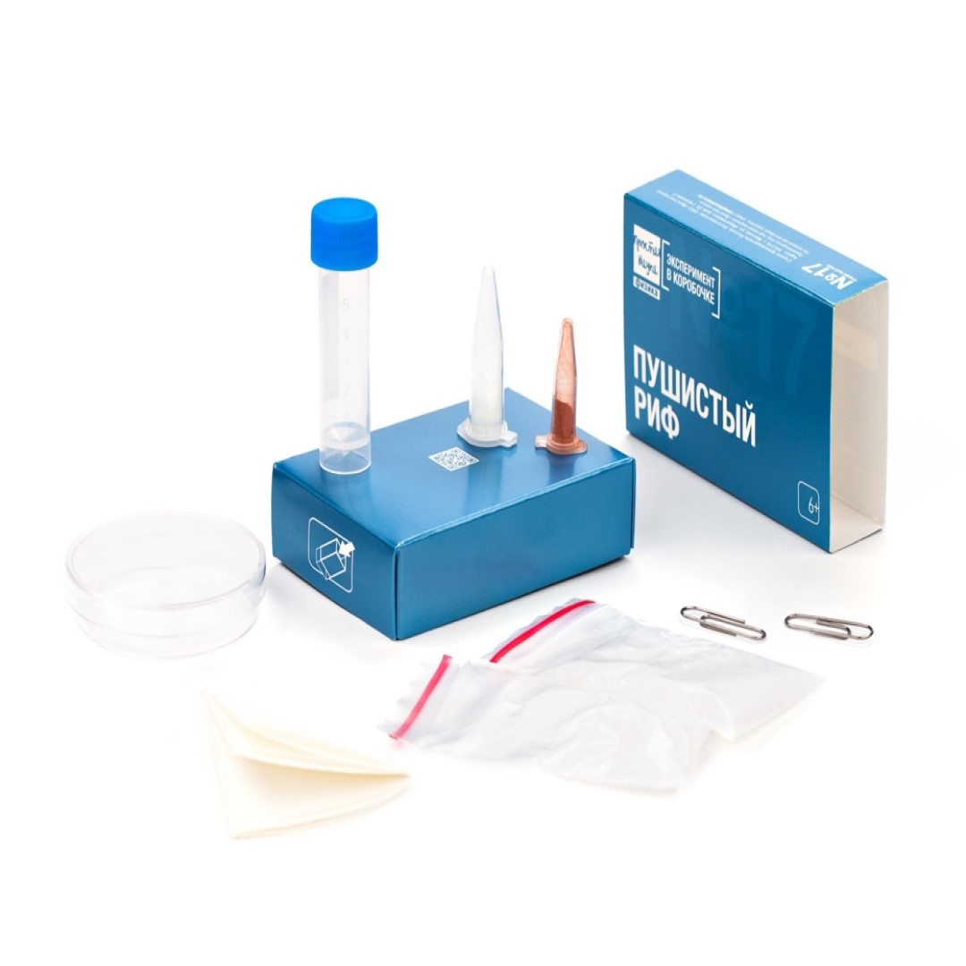 "Пушистый риф" - необычный опыт, с помощью которого Вы сможете увидеть процесс кристаллизации, наблюдая за ростом невероятных "коралловых рифов". Эксперимент продемонстрирует не только удивительные тайны химии, но и порадует своей красотой.