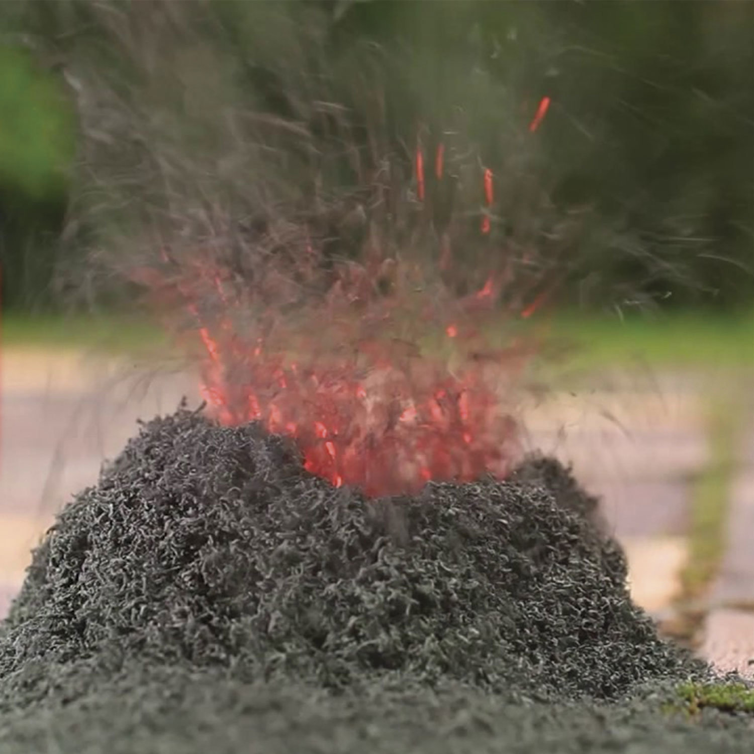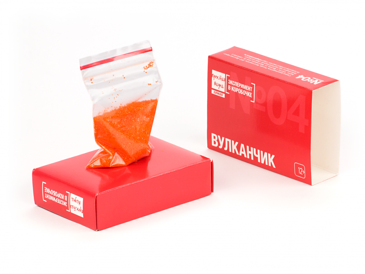 В небольшой коробке вы найдете все для создания опыта. Высыпьте содержимое пакетика горкой и подожгите его - вещество будет гореть, как бы извергаясь и выглядя, как извержение вулкана. Будьте осторожны - вещество нельзя вдыхать и держать на солнце. Для детей обязательно присутствие взрослого.