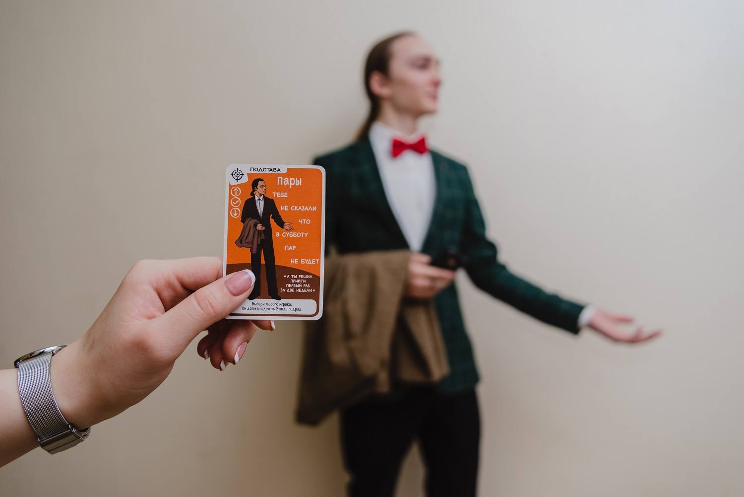Пора грызть гранит науки! Веселая карточная игра про студентов предложит вам познать все прелести обучения в университете. С помощью специальных карт игроки могут мешать друг другу, стараясь получить как можно меньше карт отчисления, три которых на руках приведут к проигрышу. Сдавайте лабораторные, получайте похмелье, стипендию, принимайте глицин, чтобы избавиться от одного отчисления и станьте лучшим студентом! По силам ли вам это? *Данная игра предназначена для лиц старше 18-ти лет.