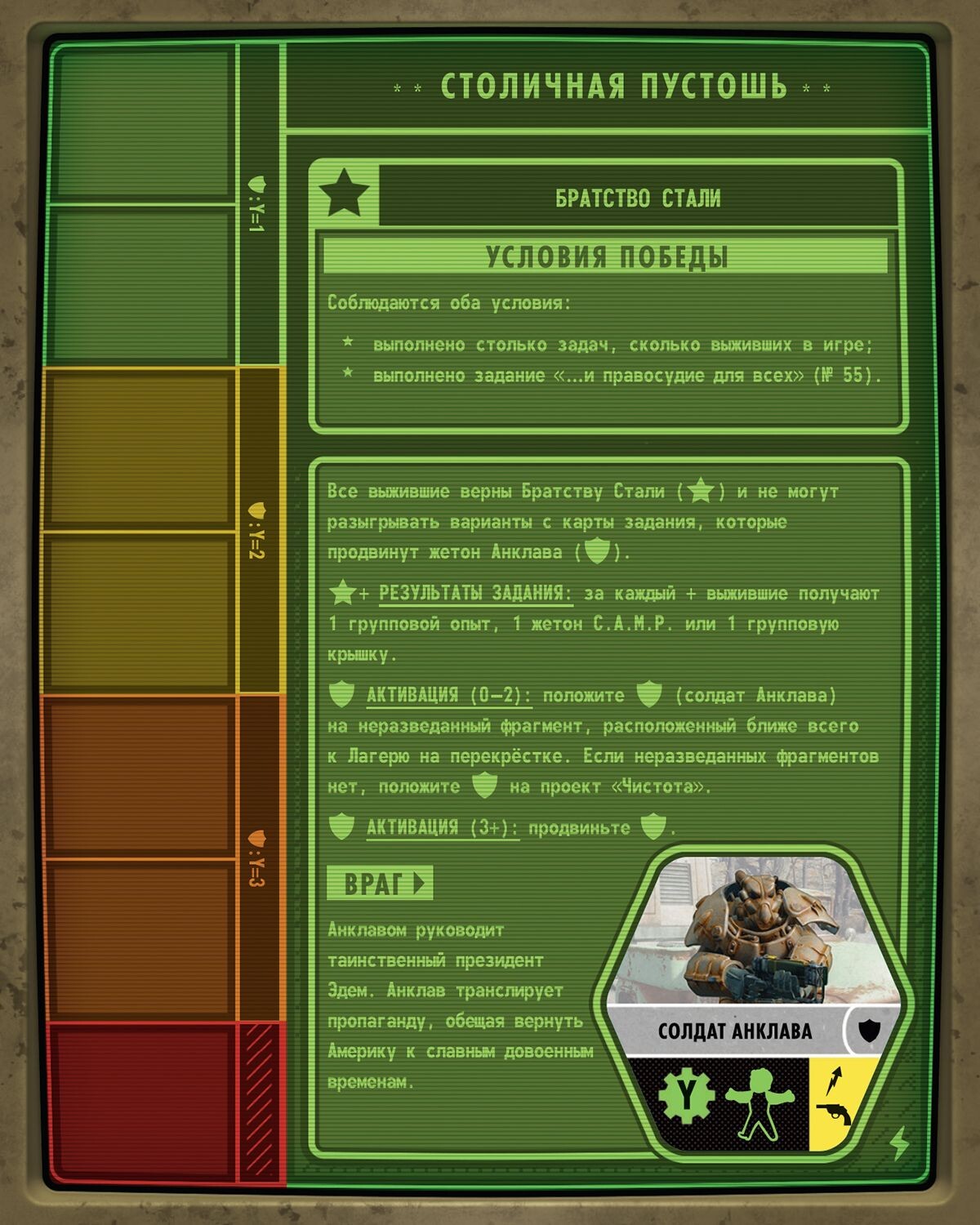 Данное дополнительный набор подходит для оригинальной игры Fallout и дополнения Fallout. New California.