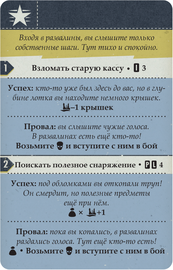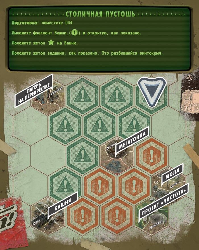 Отхлебните ледяной Ядер-колы, наденьте свою верную силовую броню и проверьте количество ядерных батарей в лазерной винтовке, под звуки джаза из похрустывающего радио мы отправляемся в Пустоши! В настольной игре Fallout, основанной на знаменитой серии видеоигр, игрокам предстоит исследовать опасные земли, пережившие ядерную войну, выполнять задания, добывать снаряжение и бороться с разнообразными мутантами. Таким образом, увеличивая свое влияние, игроки соревнуются между собой, кто станет главным на таких притягательных, но опасных территориях. Пора стать лучшим в настоящем постапокалиптическом приключении!