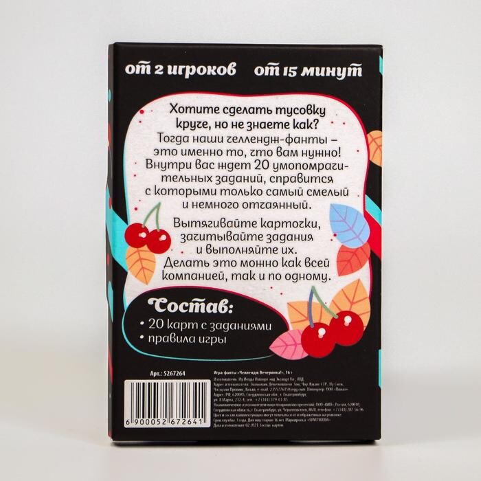 Игра предложит вам множество веселых и необычных заданий, в которых игрокам нужно будет показать как свои актерские таланты, так и проявить честность, отвечая на определенные вопросы. Первый набор карт содержит описание заданий, а второй условия, кто именно должен выполнить ту или иную задачу. Отправляли кому-то сообщение с определенным текстом в последнее время? Тогда именно вам нужно будет съесть очищенный лук. Собирайтесь большой компанией и весело проведите время!