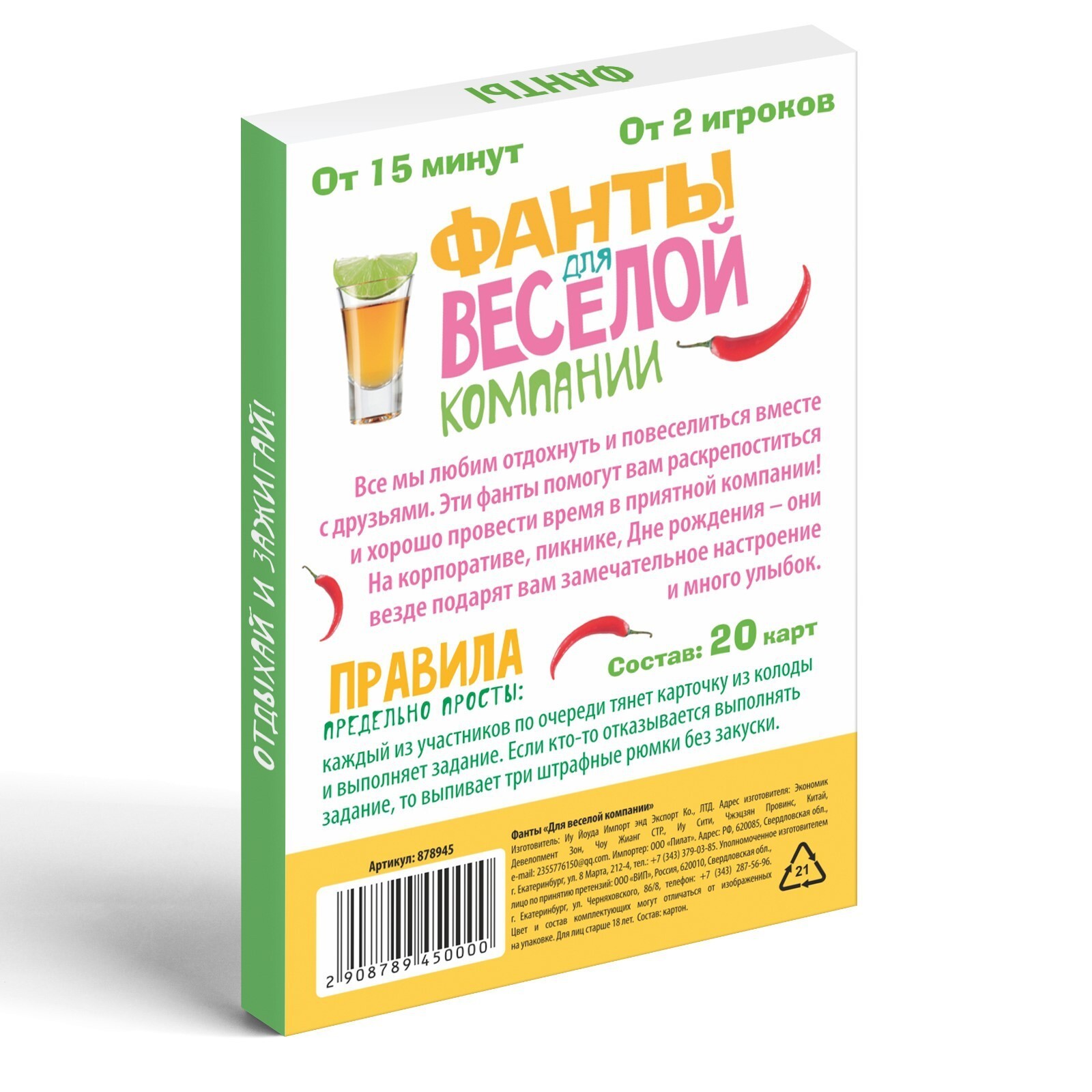 Данный набор карт содержит множество веселых заданий для застолья. Вас ждут песни, танцы, и пантомимы. Какое задание попадется вам? Соберите большую компанию, запаситесь горячительными напитками и сделайте этот вечер незабываемым!