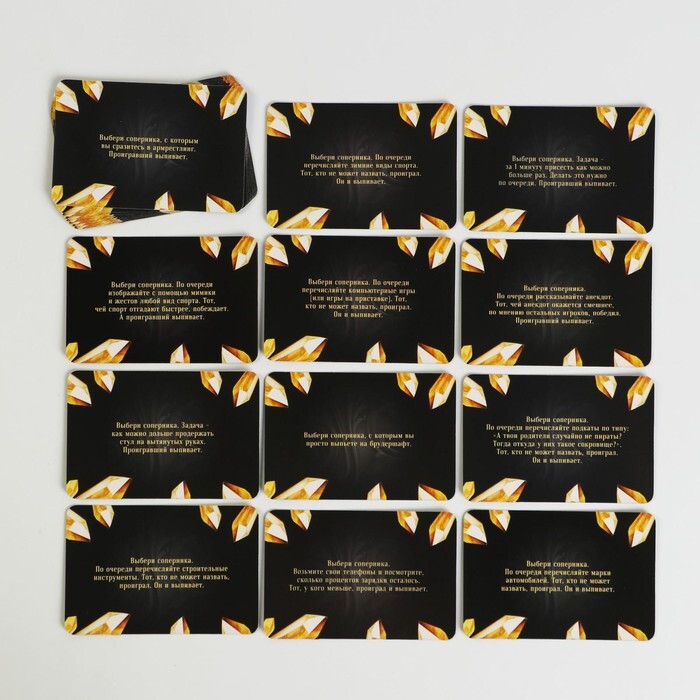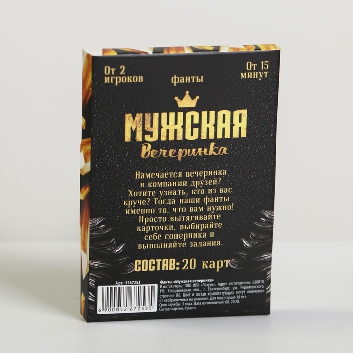 Готовы посоревноваться со своими друзьями? В небольшой коробке вас ждет двадцать заданий, большинство из которых станет проверкой физической силы. Кто сможет присесть больше всего раз? Кто самый сильный в армреслинге? При этом, игра предназначена для застолья, ведь проигравший в том, или ином раунде, должен выпить. Докажите всем, что вы настоящий мужчина!