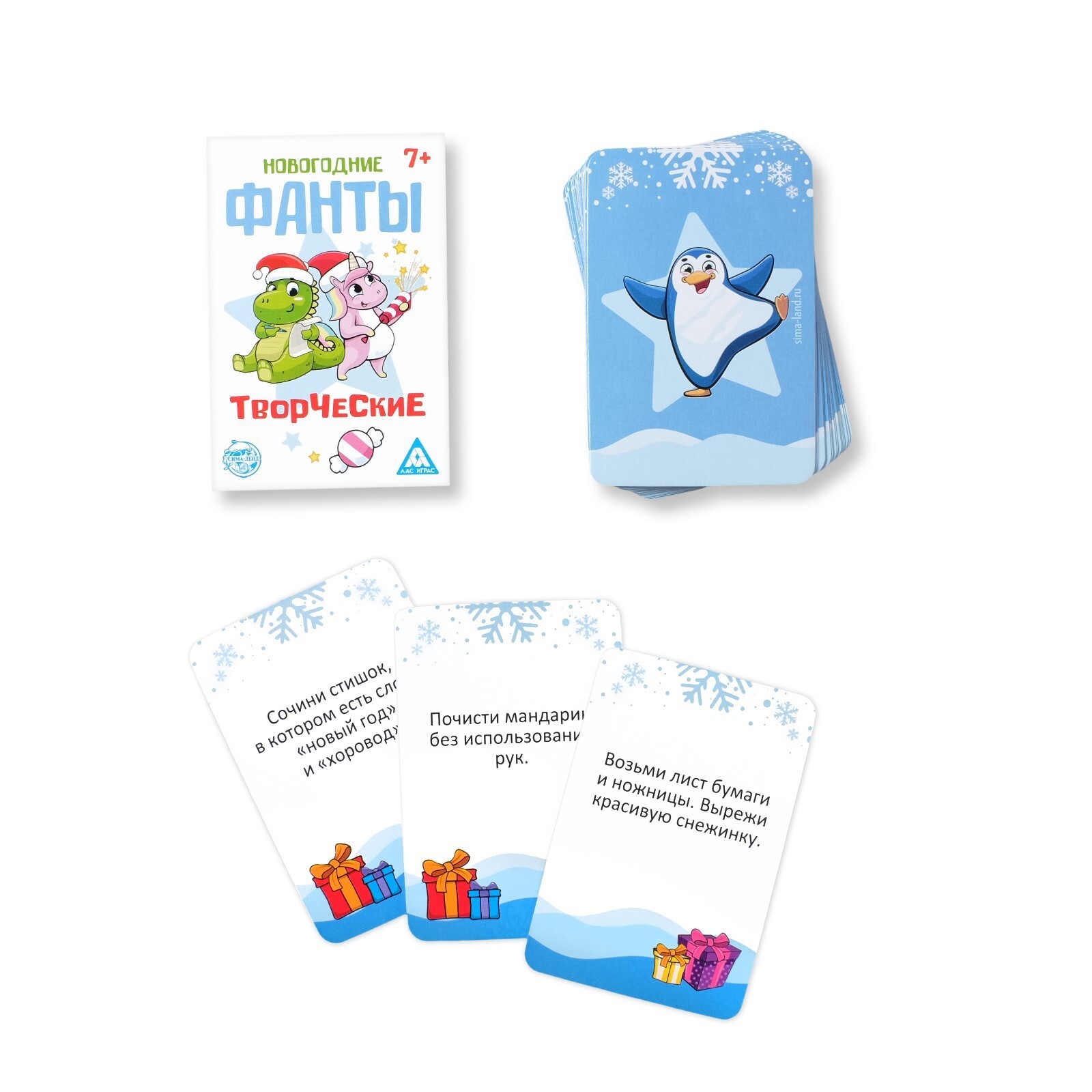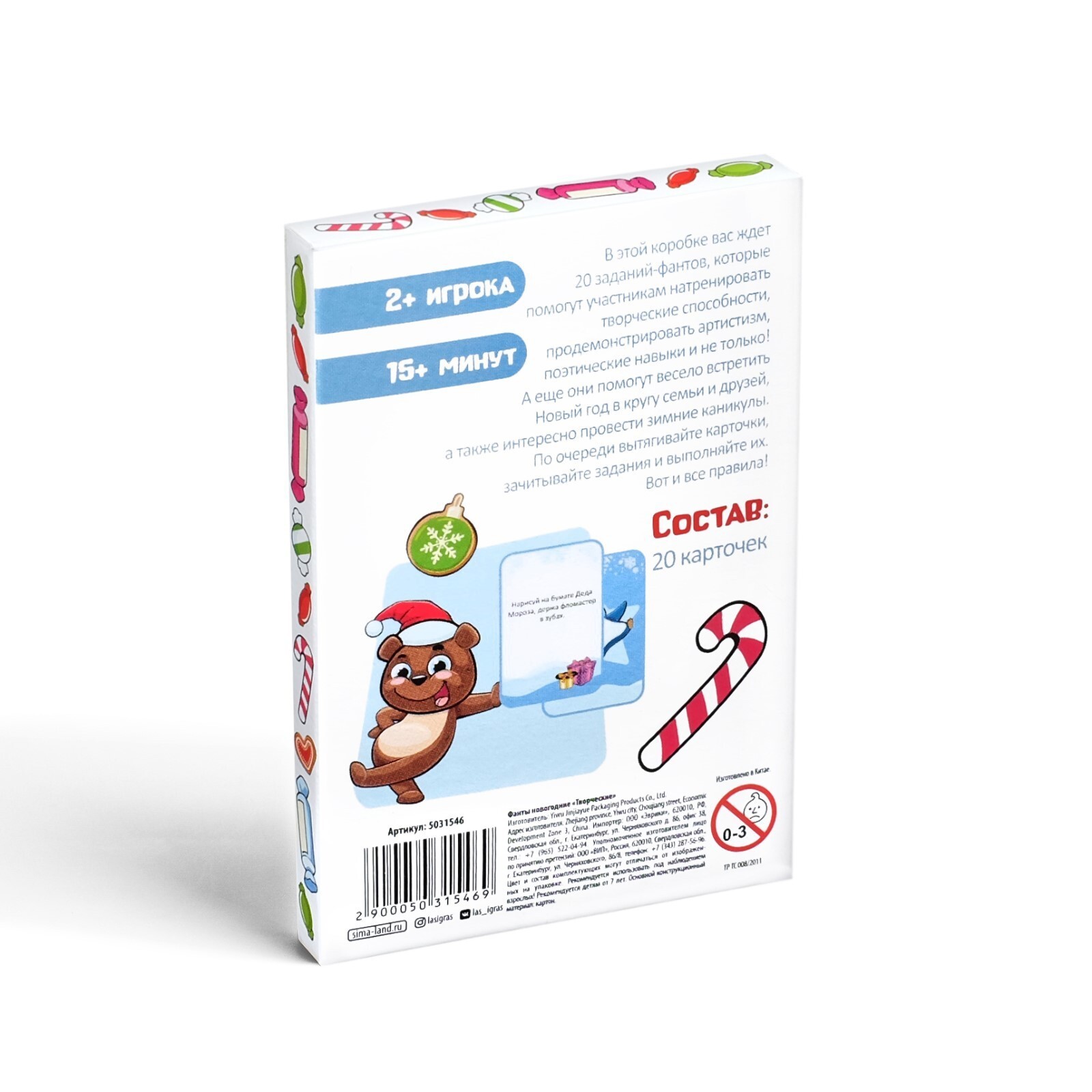 В коробке вы найдете двадцать карт с различными фантами, которые разнообразят ваш праздничный вечер и помогут встретить Новый год по-настоящему незабываемо. Выполняйте фанты, рассказывая стишки и чистя мандарин без помощи рук. Выполните наибольшее количество заданий и станьте победителем!