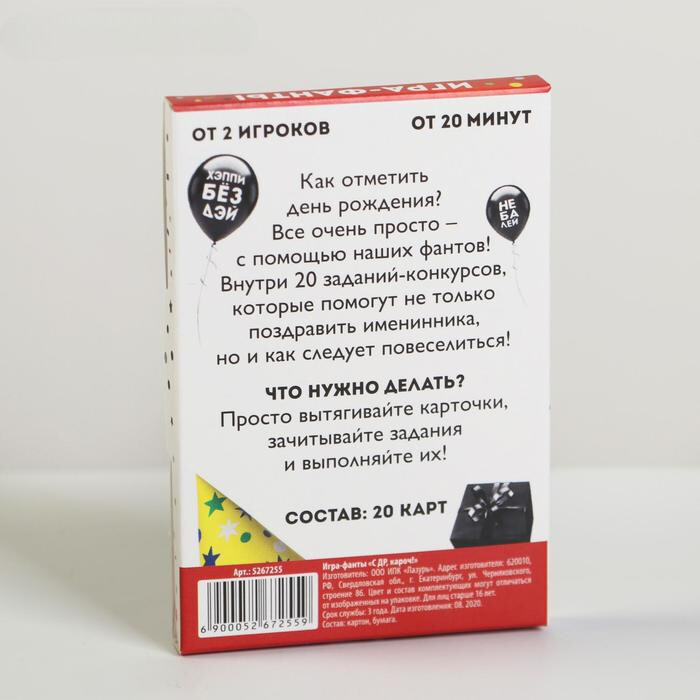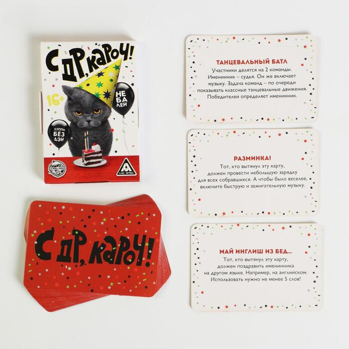С помощью этого набора карт отмечание дня рождения станет еще более веселым и незабываемым. Двадцать заданий предложат игрокам различные задания, в которых нужно будет показать свои таланты. Танцуйте, показывайте пантомимы, быстро говорите определенные слова, и даже скажите поздравление на иностранном языке. Отмечайте и веселитесь!