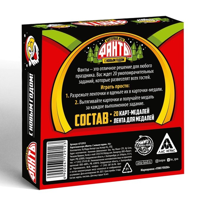 В небольшой коробке вас ждет море веселья и забавных заданий, которые предстоит выполнить. Оформленные в новогодней тематике, задания разнообразны, и за выполнение их игроки получат самые настоящие медали! Кто выполнит больше заданий, тот и станет победителем.