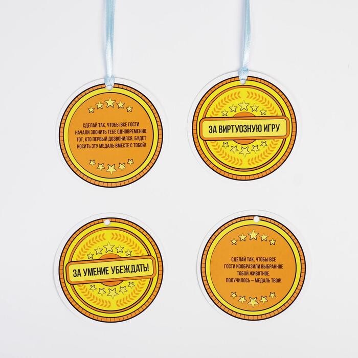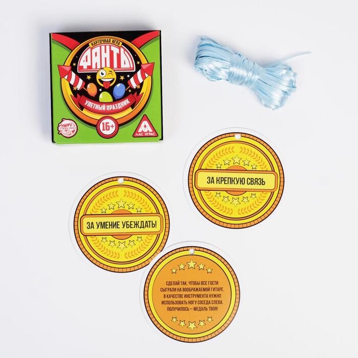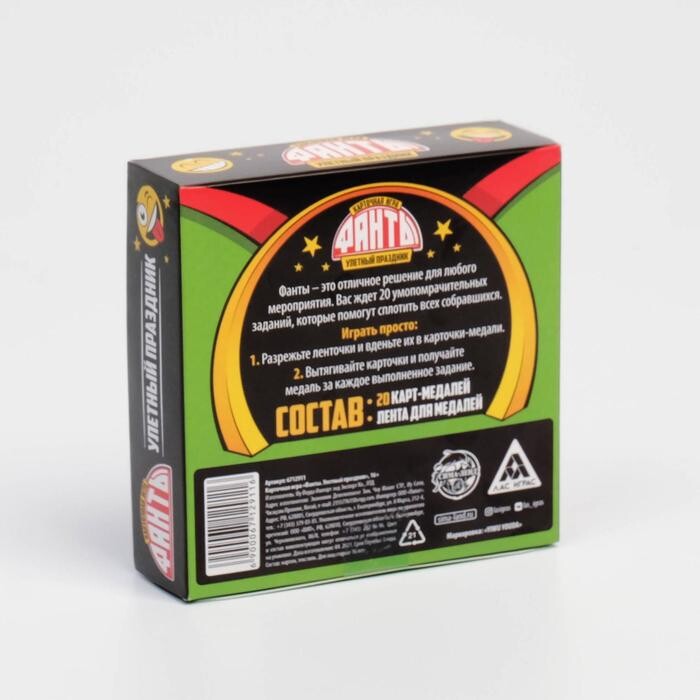 В коробке вы найдете задания, которые нужно будет давать другим игрокам. Пантомимы, танцы, изображения различных животных и объяснения слов - кто сможет справиться с поставленными задачи, и кто сможет отгадать загаданное слово? В коробке также есть и поощрение отгадывающих участников - картонные медали, которые присуждаются за те, или иные задания. Открывайте коробку и проведите время весело!