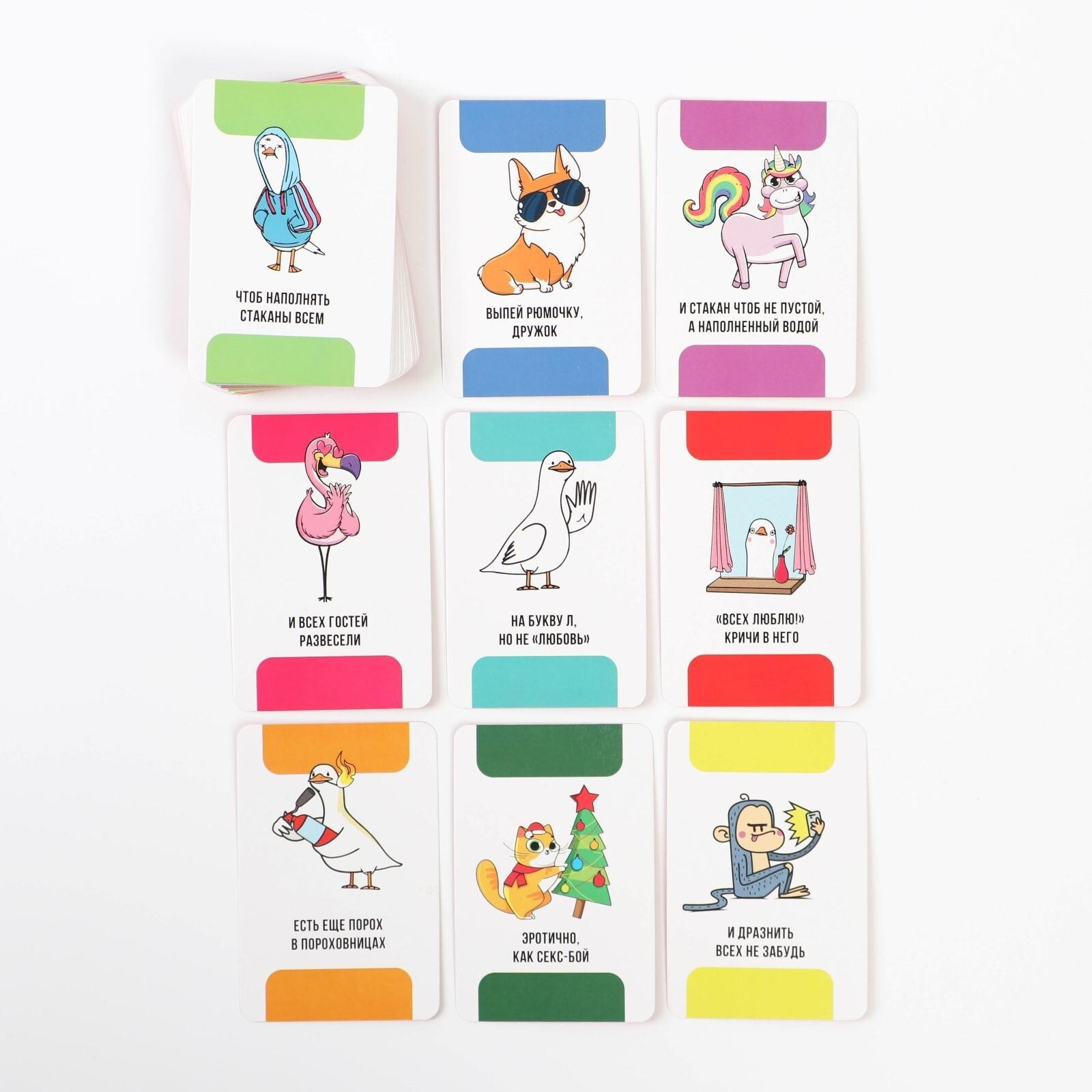 С данным набором карт скучать вам не придется! Попробуйте собрать наибольшее количество парных карт и выполняйте разнообразные веселые и безумные задания. Кто из игроков станет победителем?